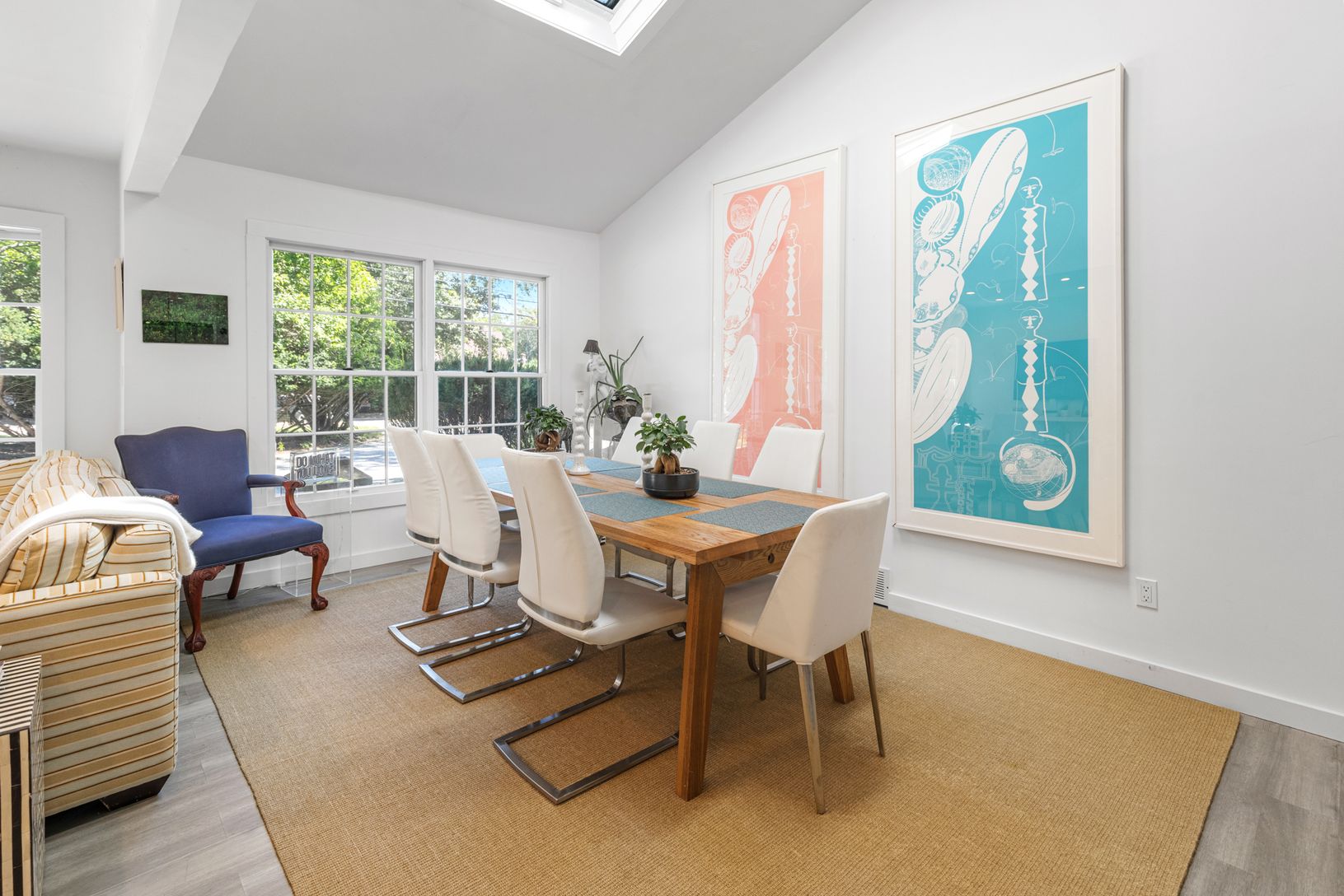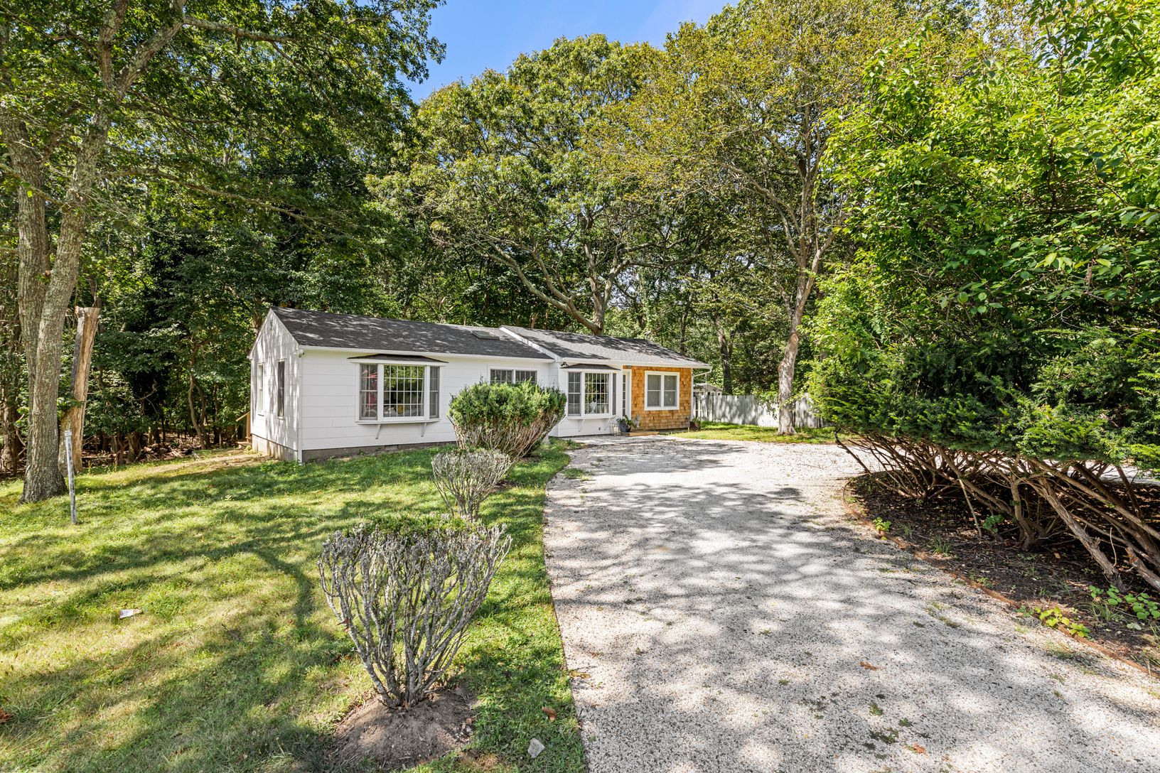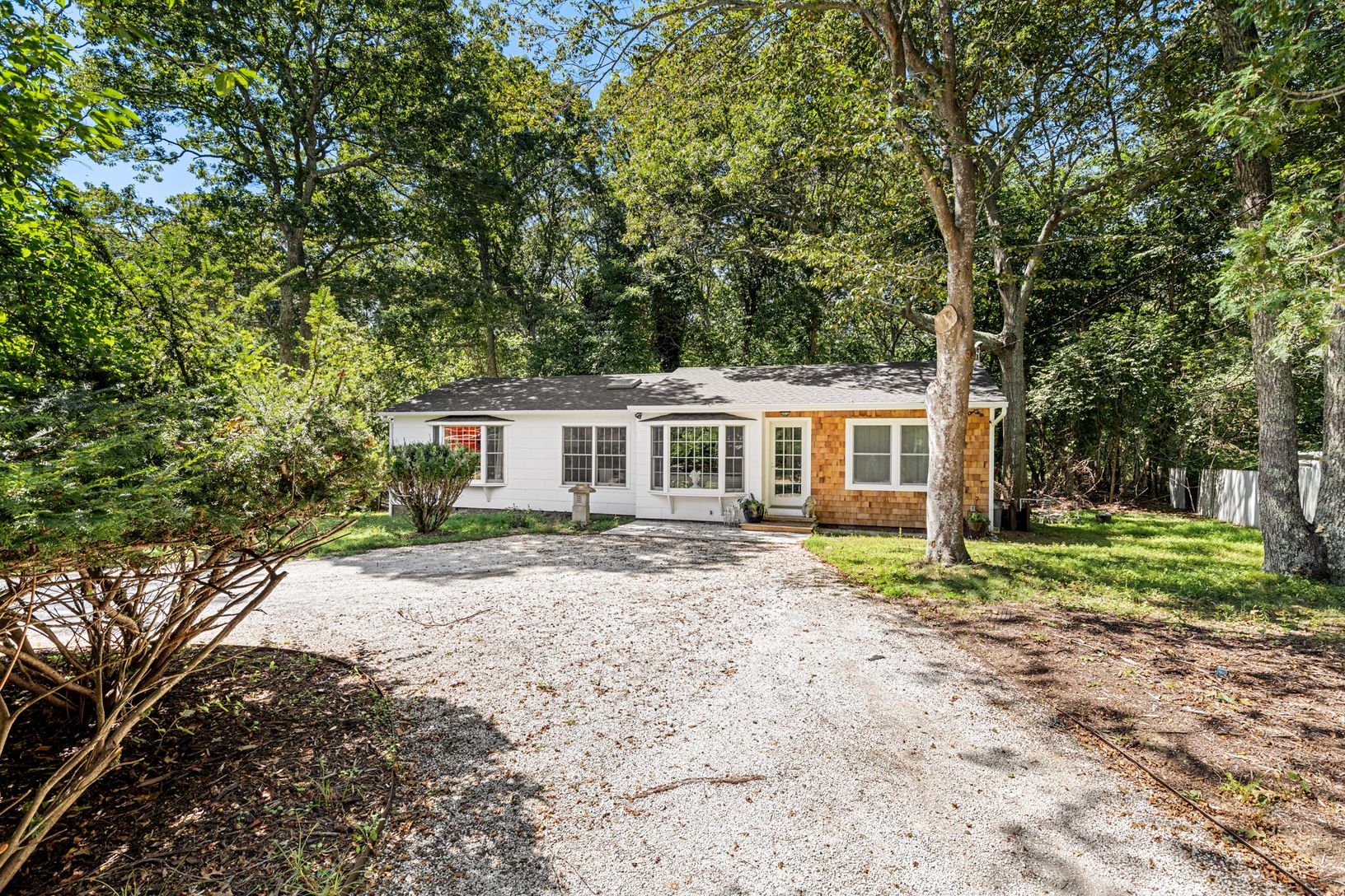 This 3-bedroom, 2-bath home sits on a private, one-acre lot in Southampton, just minutes from the beaches and village. The generous parcel not only allows for outdoor living but also presents a prime opportunity for developers or end-users to build a brand-new home of significant scale in a sought-after location. Inside, the home offers a practical and comfortable layout. The kitchen opens to the living area for a casual flow, with a dedicated
