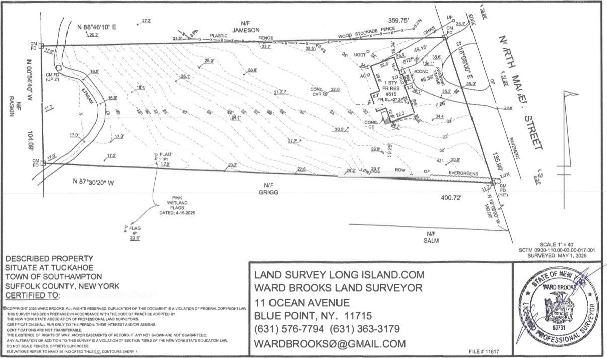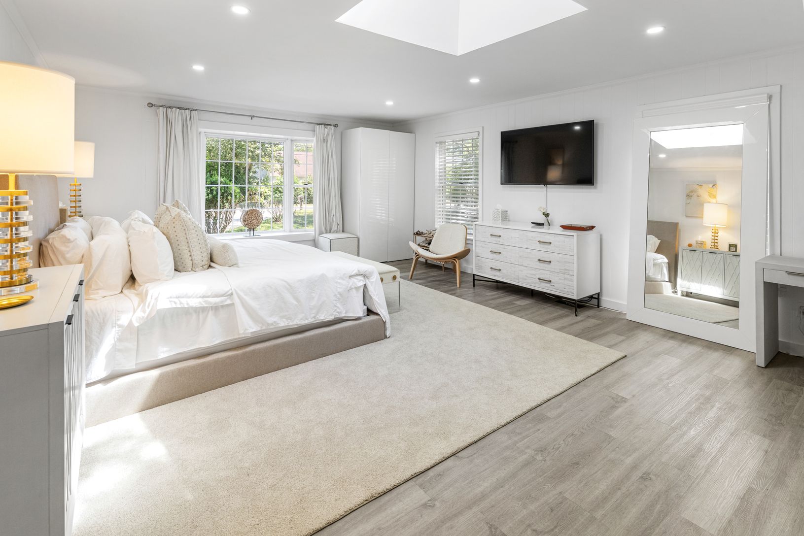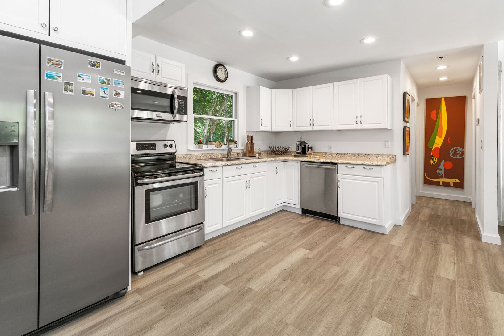 This 3-bedroom, 2-bath home sits on a private, one-acre lot in Southampton, just minutes from the beaches and village. The generous parcel not only allows for outdoor living but also presents a prime opportunity for developers or end-users to build a brand-new home of significant scale in a sought-after location. Inside, the home offers a practical and comfortable layout. The kitchen opens to the living area for a casual flow, with a dedicated