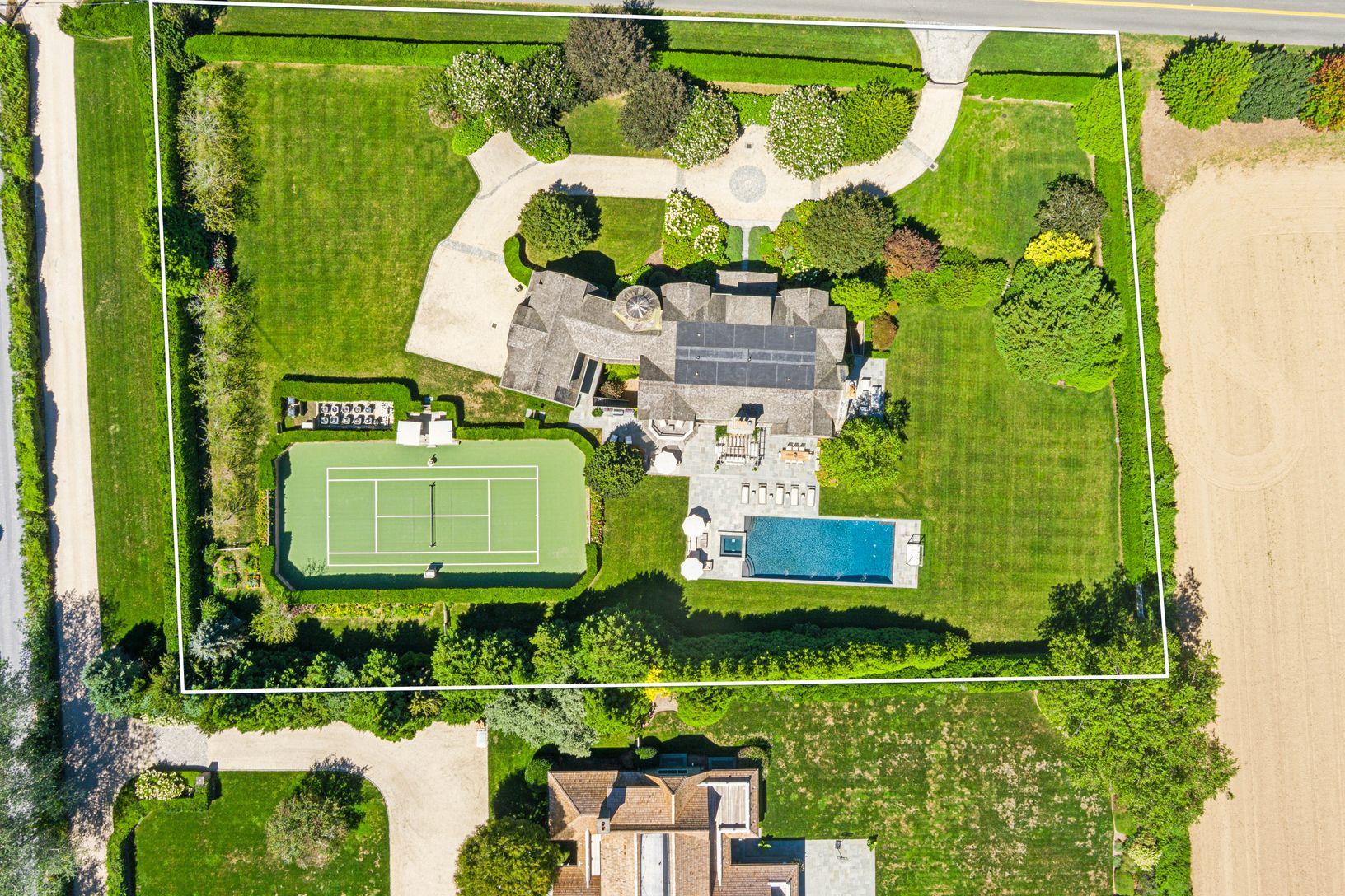 In the heart of Sagaponack on one of the most desirable Lanes of the Hamptons, moments to ocean beaches, this gated shy 2 acre secluded property instantly captivates upon entering. A comprehensive landscaping renovation by Marder's has created a private oasis with protected pastoral field views over the adjacent 15.8 acre reserve. This true 3 level home of approximately 12,500 square feet is designed for effortless, gracious living. The spacio
