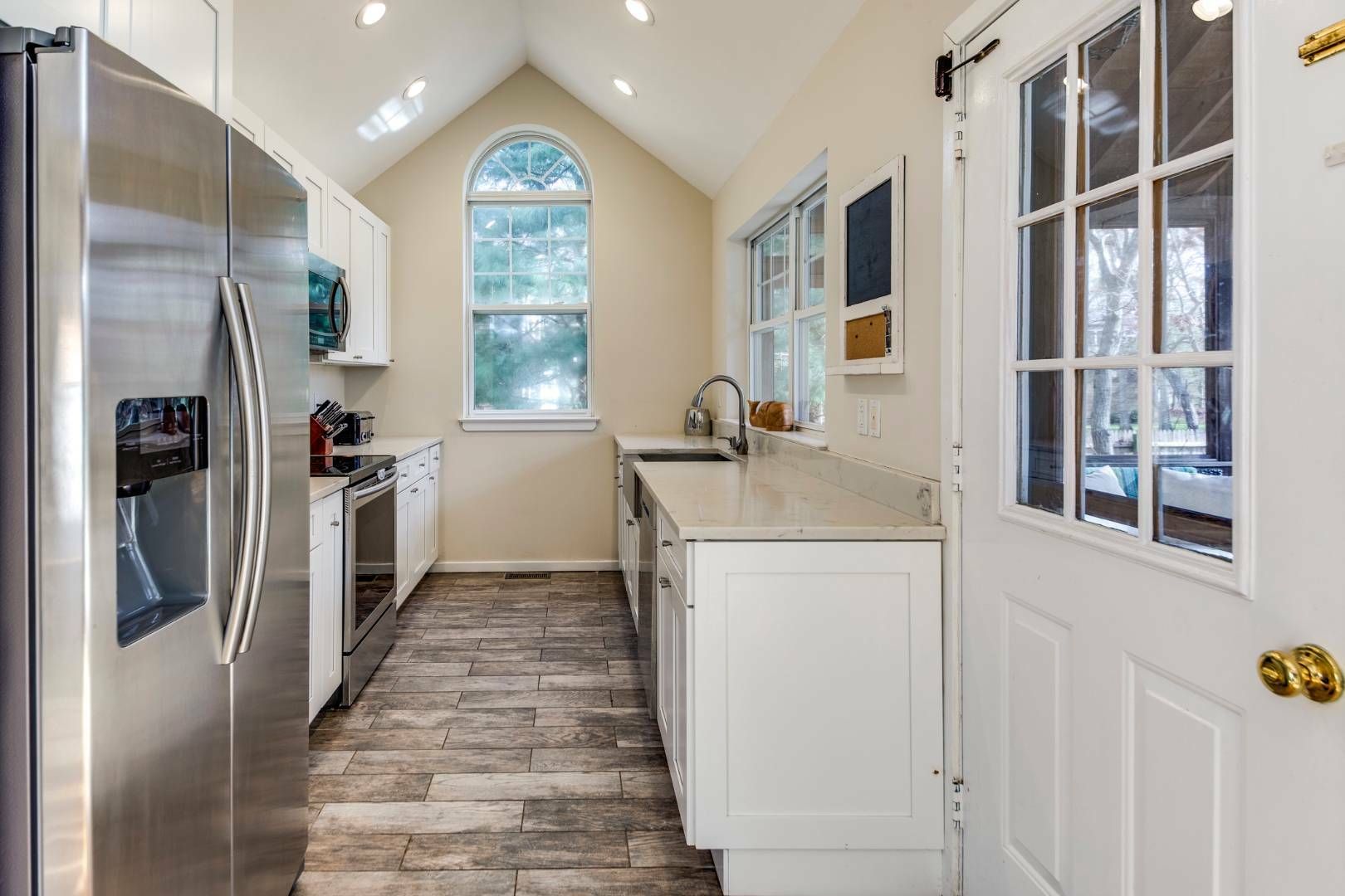 Fantastic location! Just moments to East Hampton Village, this updated Post Modern is poised for a quick sale. The first floor features a large living room, with vaulted ceilings and modern fireplace which open up to a dining area and a bright, white kitchen. Completely updated in 2017, there is ample storage, stainless steel appliances and quartz countertops. Rounding off the first floor are two bedrooms, and a full bathroom, updated in 2016