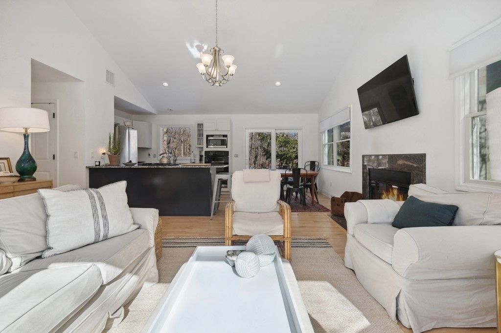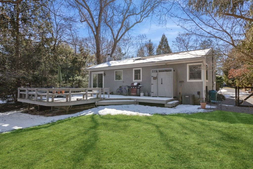 Discover your cozy retreat in the heart of East Hampton Springs! Introducing this 3-bedroom, 1-bath cottage that radiates charm and comfort. The living area beckons you to unwind by the crackling fireplace, creating the perfect setting quiet evenings. The outdoor deck provides comfortable seating and a fire pit for cool nights. Don't miss your chance to experience the nearby farmers market and bay beaches.