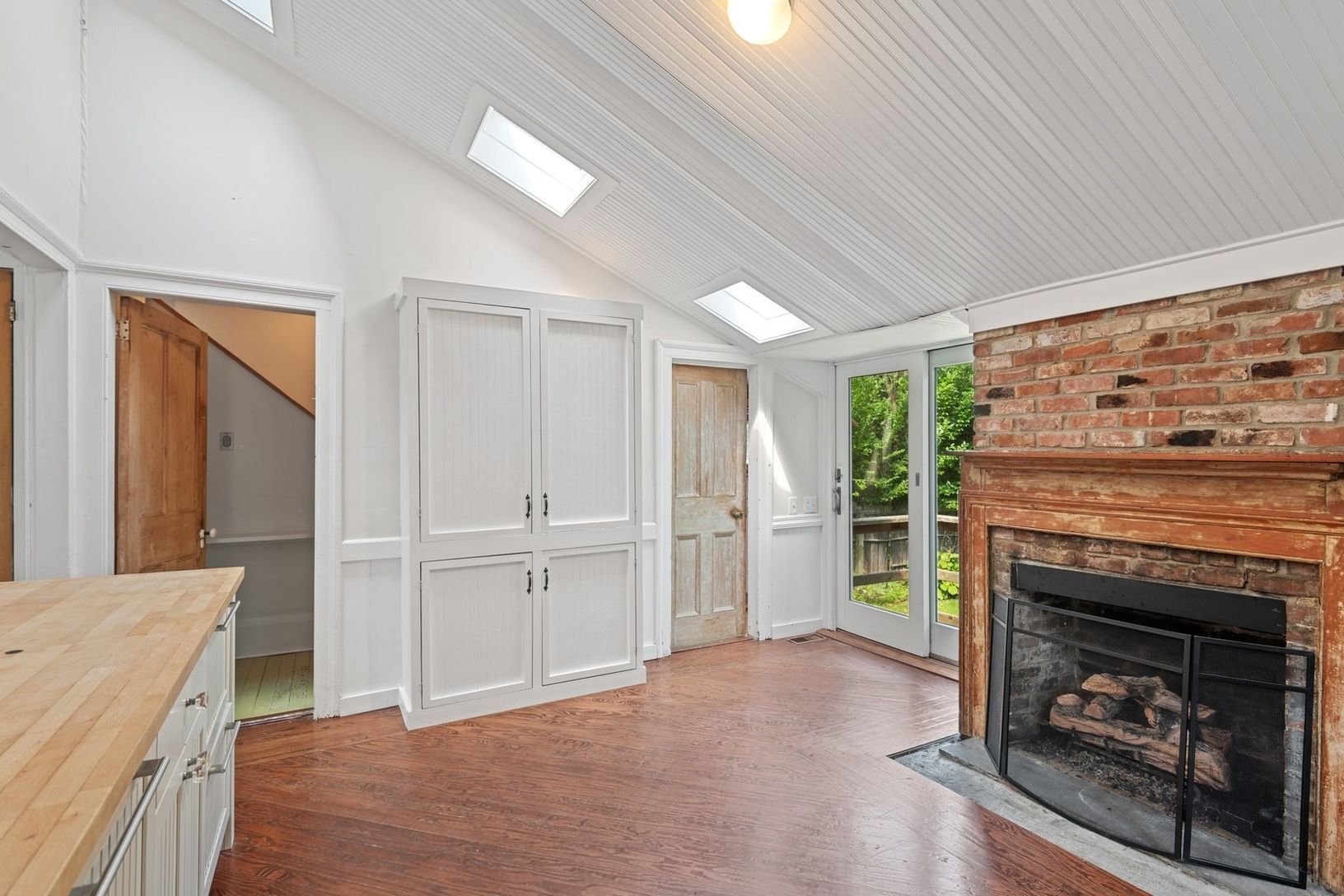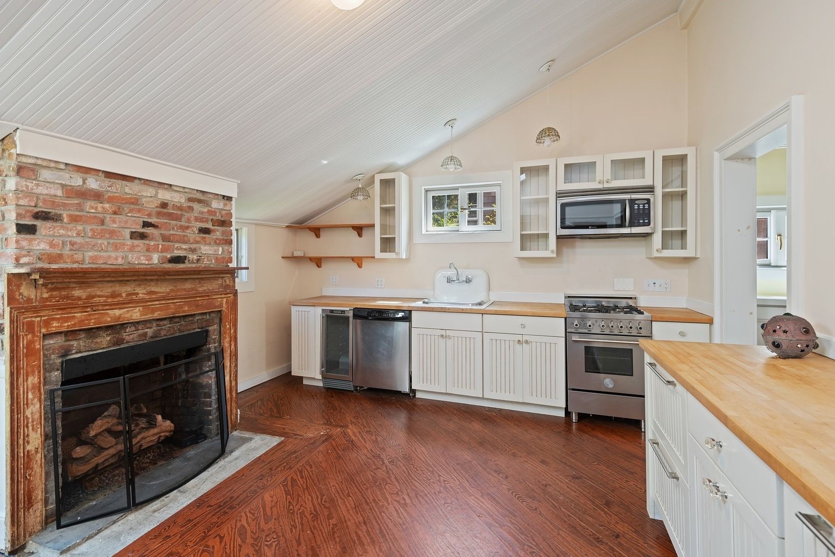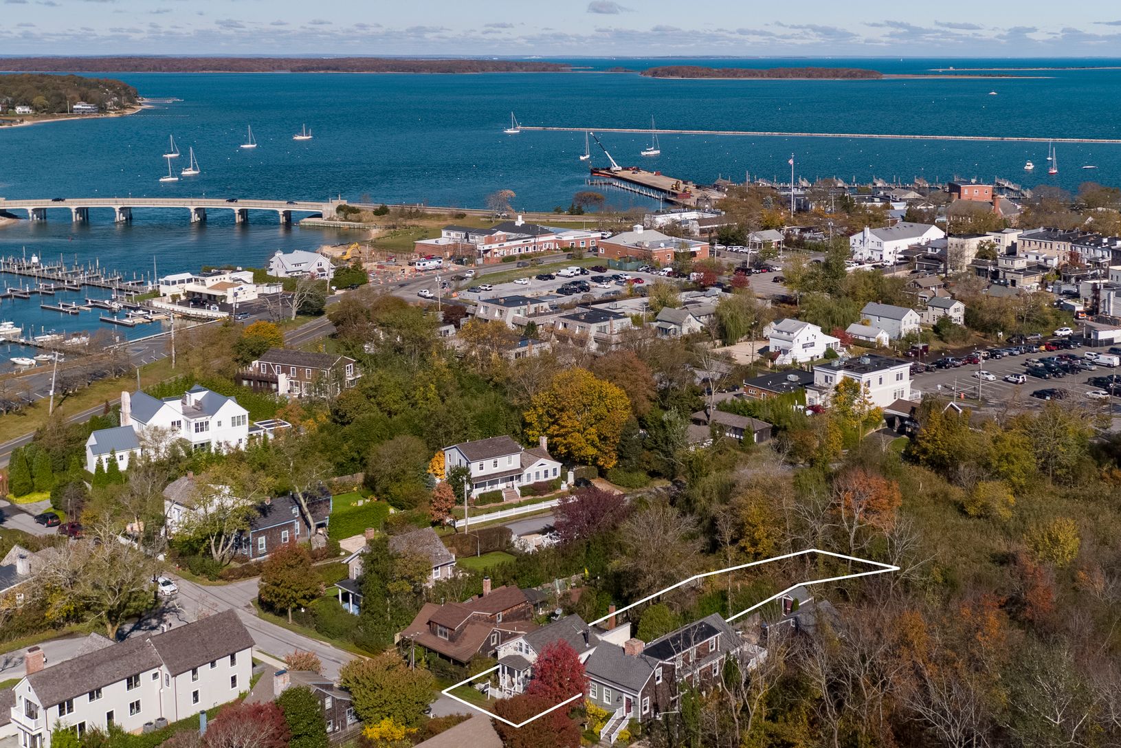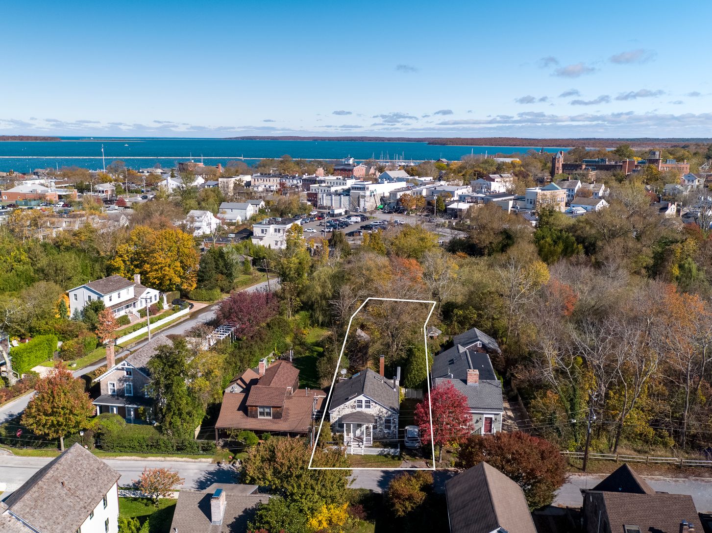 On one of the loveliest streets entering off Main with its old world pageantry then ending at a marina. Theatre, movies, shops, waterside dining, museums, library, galleries, historic sites only a few minutes away. Village living, convenience, charm and privacy in a charming and affordable 1832 vintage cottage on .19 of an acre. Close to everything is this cozy cottage boasting many original details, renovated kitchen with upscale appliances,