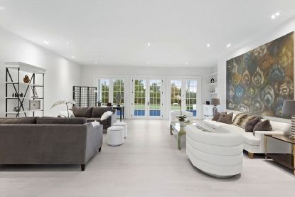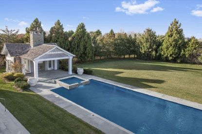 A scenic 1.8 acres of immaculately maintained grounds delivers an exclusive lifestyle in this Hamptons estate. Situated in a private cul-de-sac just minutes from the ocean, the luxury residence has been intuitively crafted to create a resort-like sanctuary with a magical sense of privacy and seclusion. Faultlessly presented to ensure a timeless quality, this remarkable package is simply without parallel and offers over 10,000 square feet of li