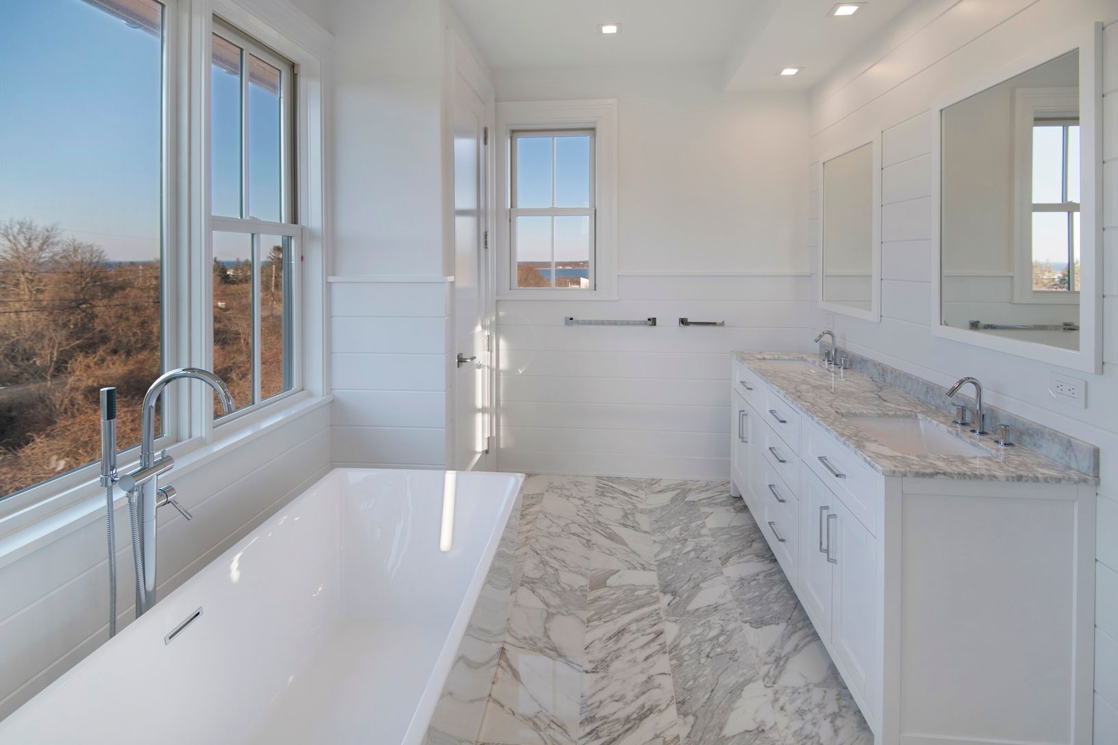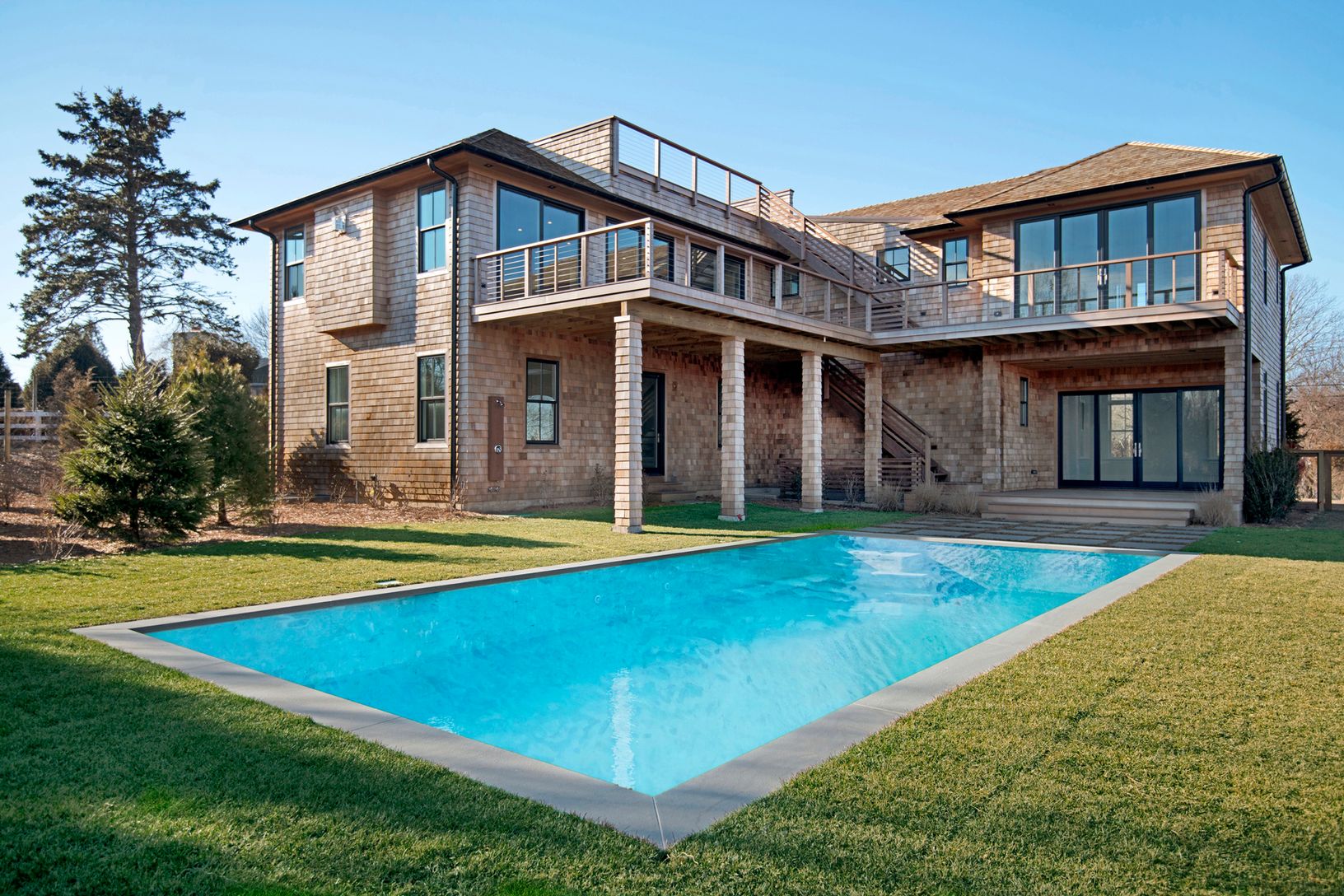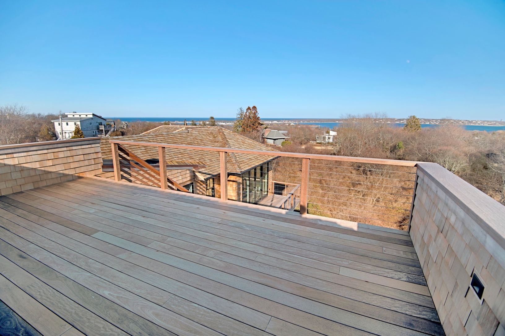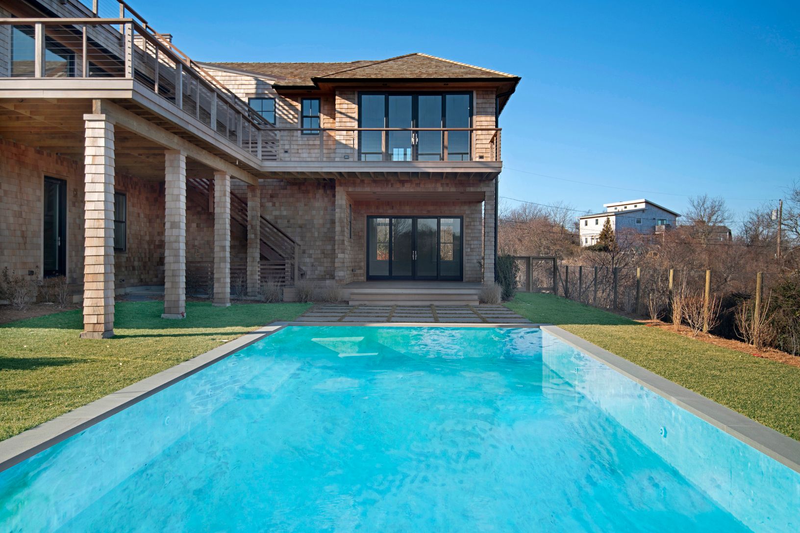 Just completed 4200 sq ft+/- traditional five bedroom, four and a half bath. Stunning views of the ocean, bay and Lake Montauk. The kitchen features an 11 ft island with top of the line appliances opening into the dining room and living room with gas fireplace. Private roof deck. Two car attached garage, 1800+/- sq ft basement. 10 ft ceiling on each floor. Heated salt water pool.