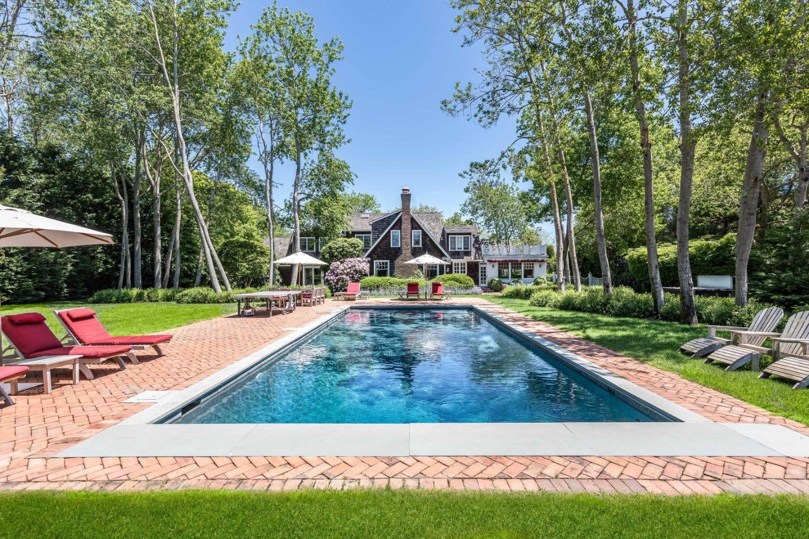 Set on a very secluded 1.4 acres, this six bedroom traditional features a first floor master suite, additional master up stairs with four guest rooms, two dens, large living room, dining porch, and lower level with rec room, gym, play space, and full bath. Out back, you will find a western facing pool, pool house, children's playset all located on a quiet cul-de-sac and very close to the beach.