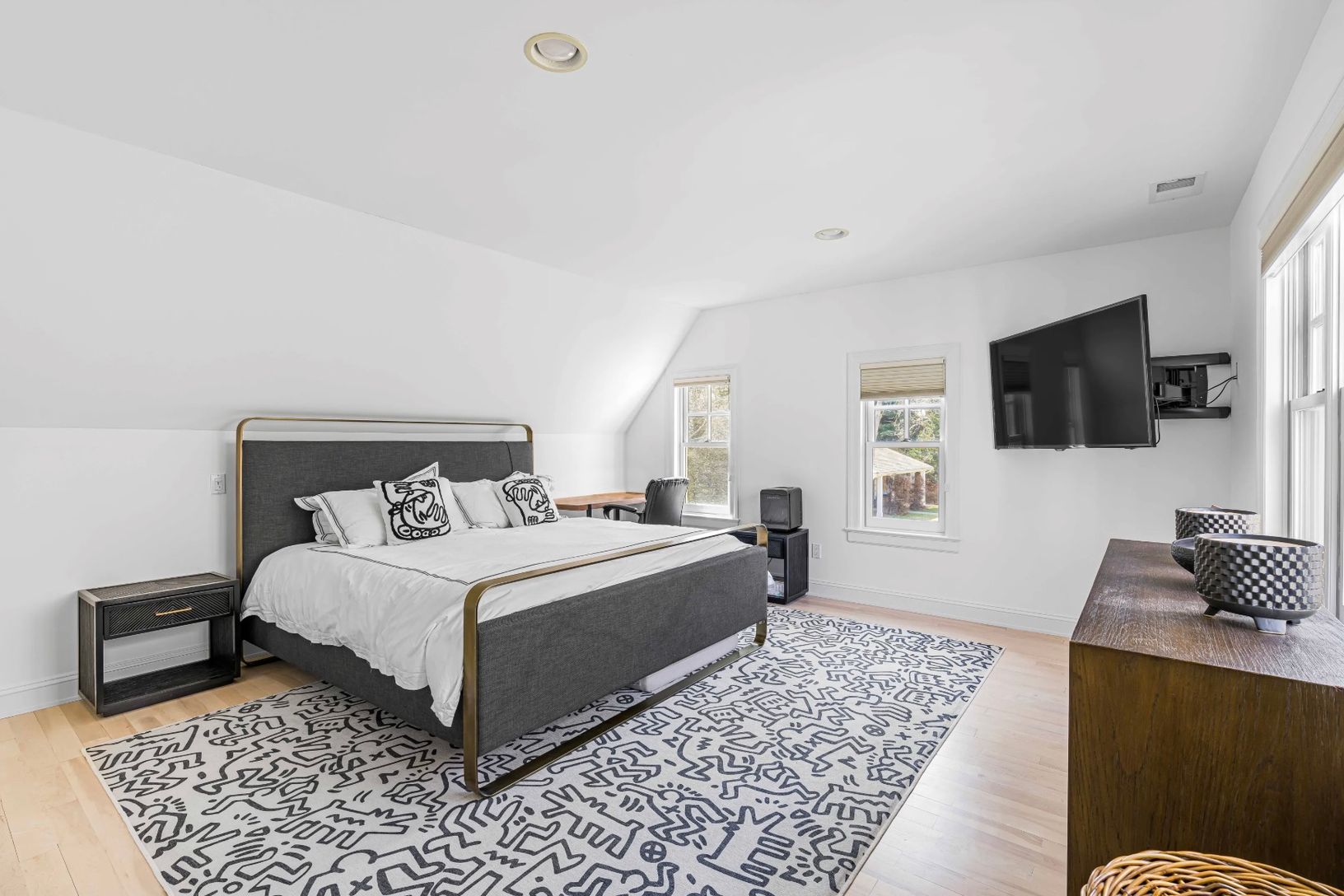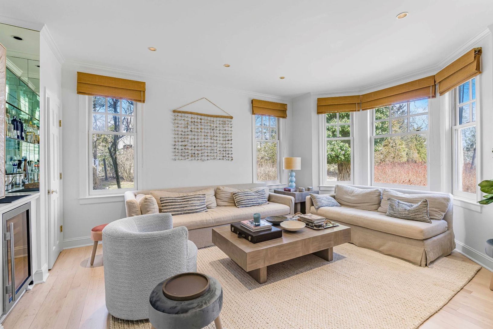 Set on a secluded 1.4 acres on a quiet cul-de-sac just south of the highway, this elegant six-bedroom Sagaponack rental offers the best of Hamptons living, moments from pristine ocean beaches, top restaurants, and boutiques. The home features a first-floor Primary suite, an additional upstairs Primary suite, four guest bedrooms, two dens, a spacious living room, and a charming dining porch. The finished lower level includes a recreation room,