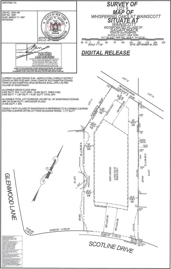 This vast 1.5 acre wooded lot can be built to suit and is conveniently located to all the Hamptons has to offer. With room for a 6000 +/- square foot home and swimming pool, this prime parcel is a short 2 miles directly south to the Atlantic Ocean's Town Line beach. On a quiet street and naturally forested, this unique parcel is conveniently located in prestigious Sagaponack and close to the Wainscott border near the Poxabogue golf course and