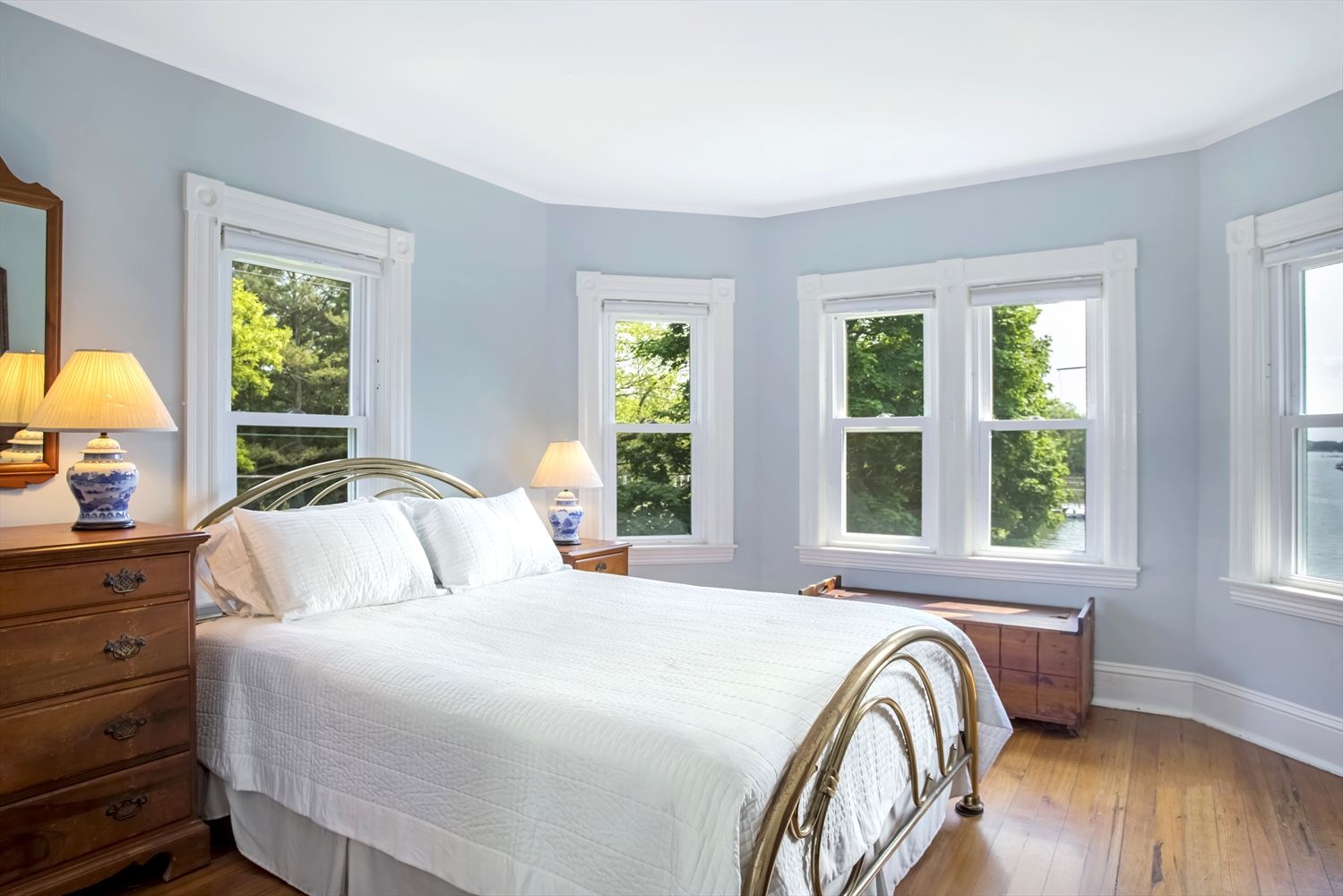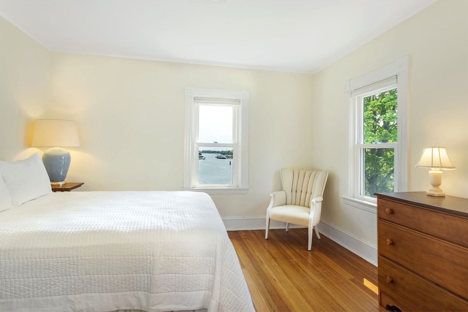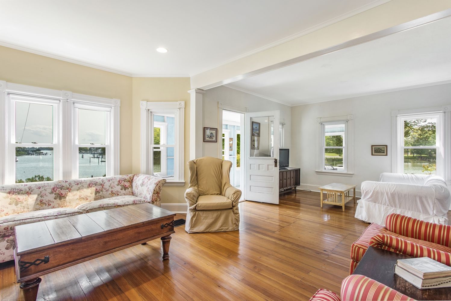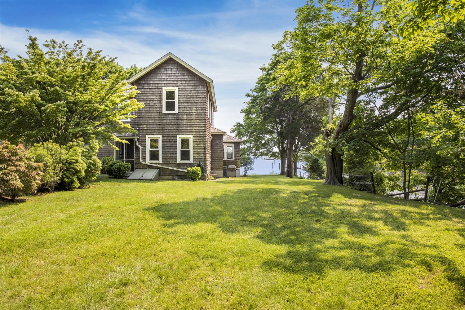 Classic 1908 Farmhouse with over 400 Ft. of waterfront, beautiful water views and a dock with easy access to the harbor and open water. This southerly facing shingled home has 4 bedrooms, 2 baths and is sited on .88 Acres.