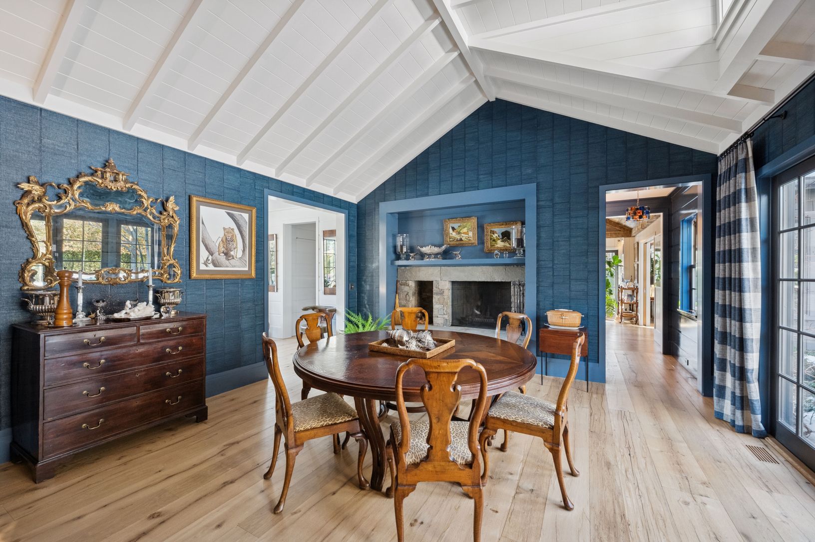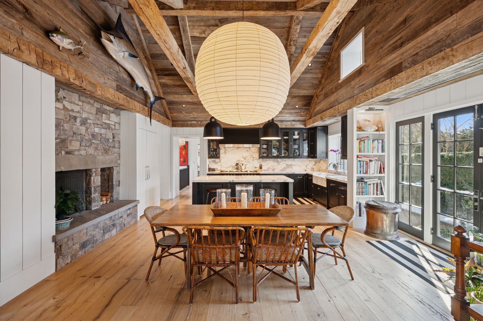 Tucked away in the heart of an East Hampton Village Lane, this elevated summer retreat pairs timeless architecture by Beeton & Company with lush, layered landscaping to create an exceptional indoor-outdoor living experience. Set on beautifully manicured grounds, the property offers multiple outdoor living spaces surrounded by mature plantings. A pool pavillion with a wood burning fireplace provides an enchanted setting for relaxing or ent