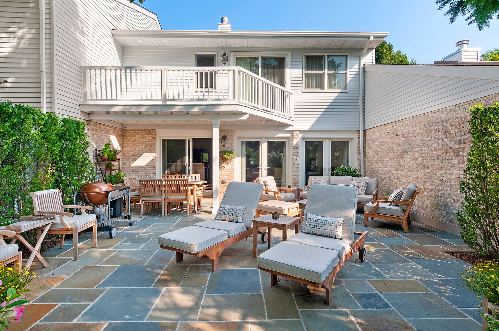 This meticulously renovated Farrington Close Condo is located on the sought after Southerly end of the compound. The unit has been totally redone including new windows as well as additional windows in master and skylights on balcony. All appliances, mechanicals and fixtures are brand new as well First floor has entry foyer, grant sunroom sitting area, living room area with paneling and drop down TV, dining room area and new french doors wit