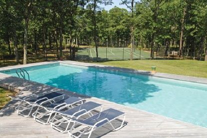 This spacious contemporary home offers a stylish Hampton Resort with luxurious amenities. Take comfort throughout spectacular living room, open kitchen / dining areas and fully lit screened in porch. 5 bedrooms are all en suite with 3 master suites featuring Jacuzzi tubs. Relax and enjoy you Hamptons summer indoor and out. Its the perfect place for entertaining around heated pool, and tennis court all on 5.7 private acres.