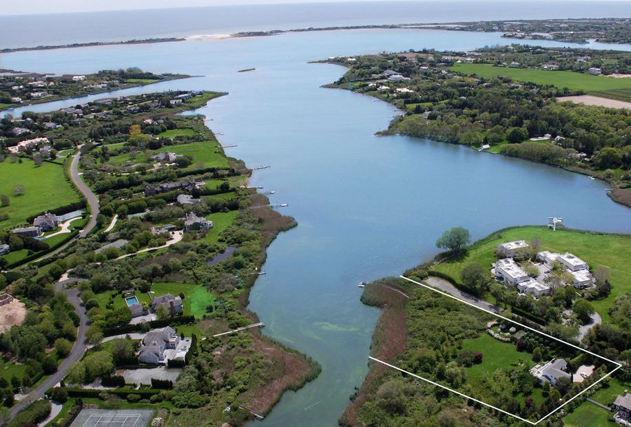 Paddle or power to famed Hamptons Ocean beaches from your private dock with spectacular views of Mecox Bay and the Atlantic Ocean. On 2.5 acres and with nine acres of protected land to the east, the property offers privacy in a lushly landscaped setting featuring extensive gardens and beautiful plantings amidst rolling lawns. A stone terrace and full length second floor decks all have full Southern exposure with amazing bay and ocean views. N