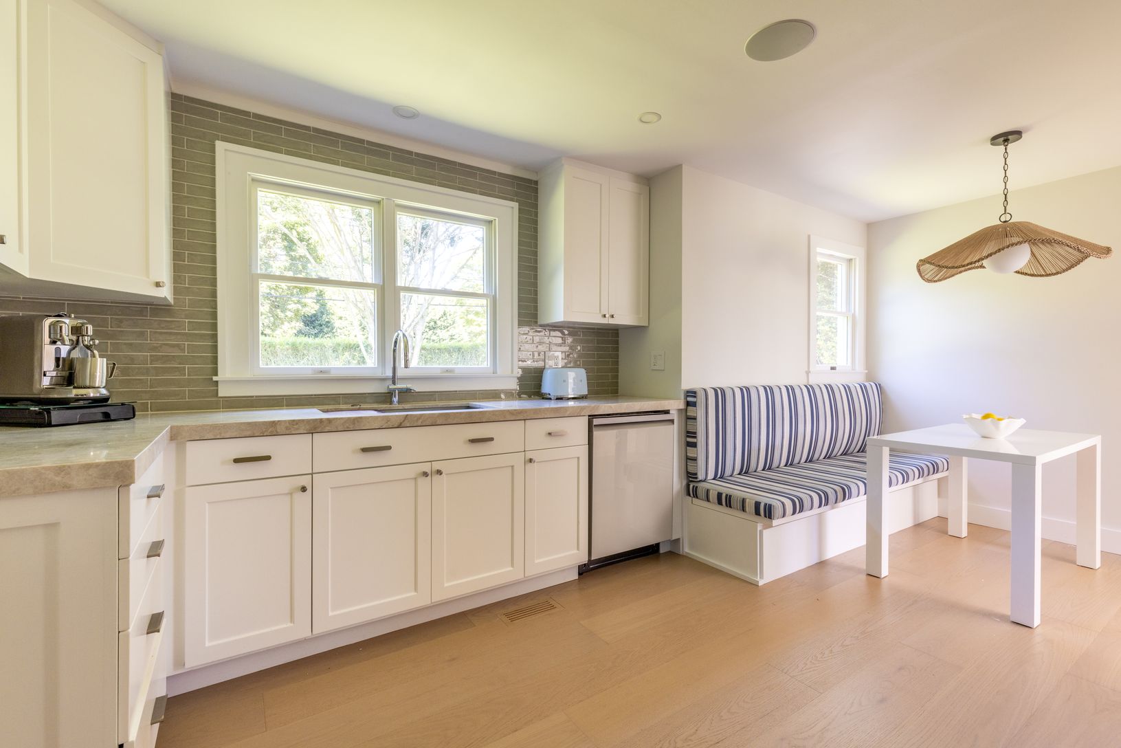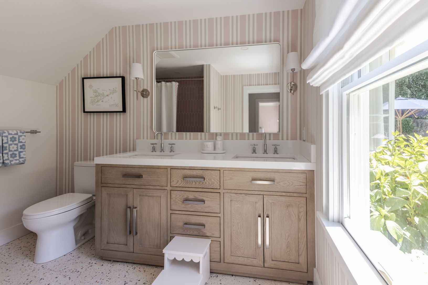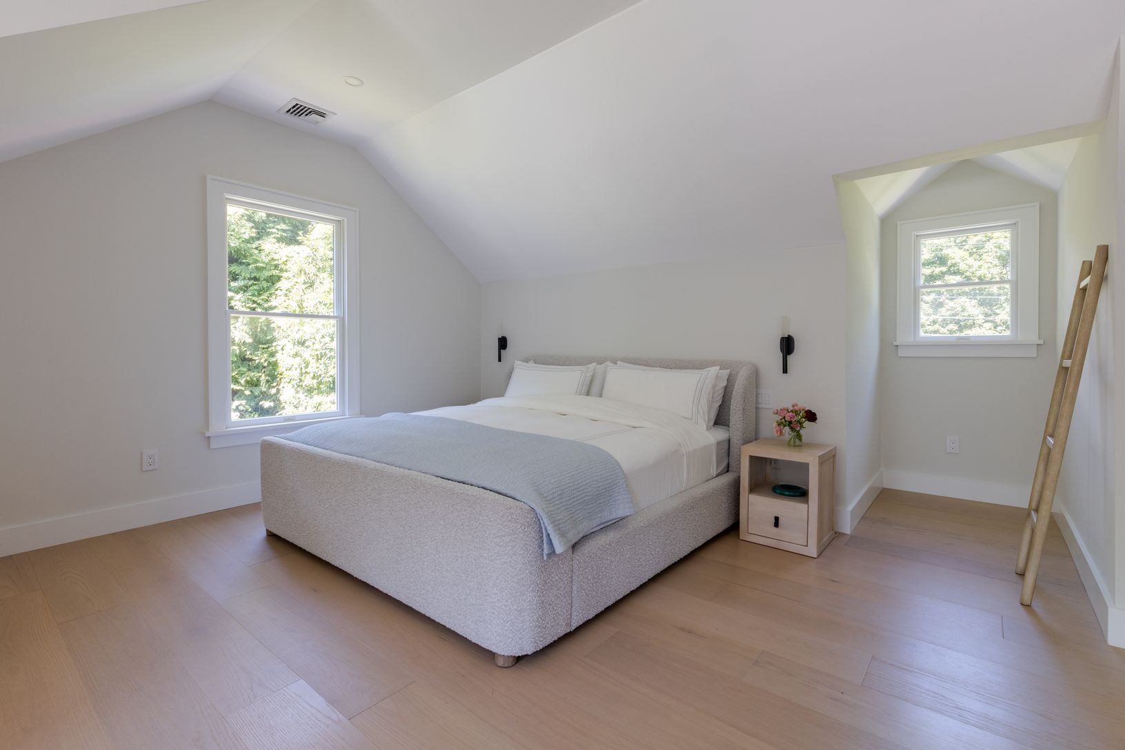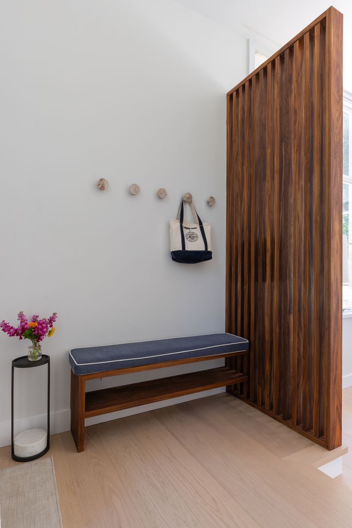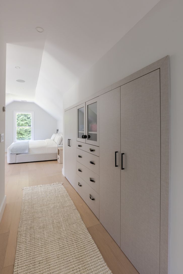 Set on an enchanting, tree-lined street just moments from East Hampton Village, this classic c.1950 Hamptons residence by award-winning architect Michael Haverland offers 3,500 square feet of refined living. The home features four bedrooms and four-and-a-half baths, including a junior primary on the main level and a spacious upper-level primary with a seating area and spa-like bath. A dramatic double-height addition introduces vertical cedar c