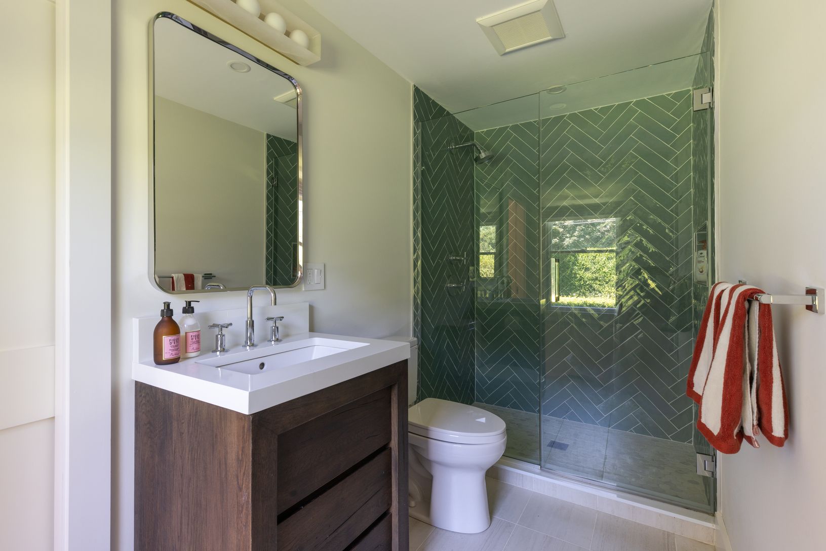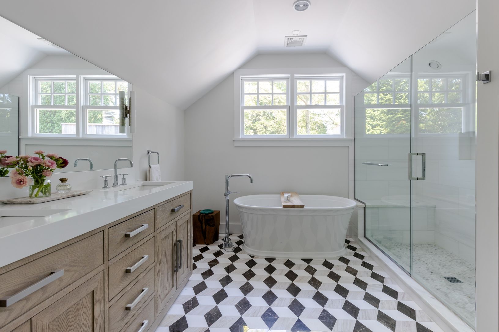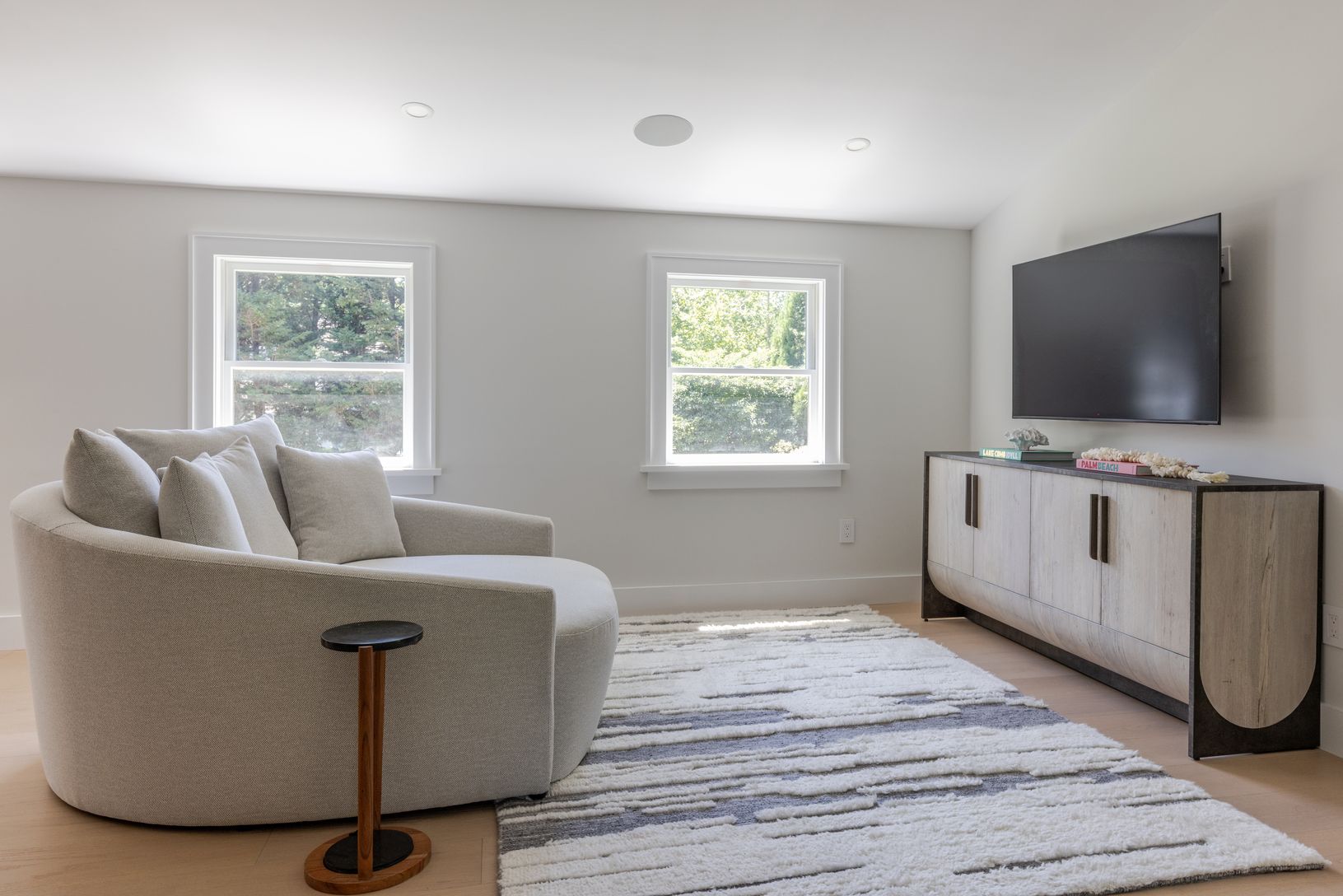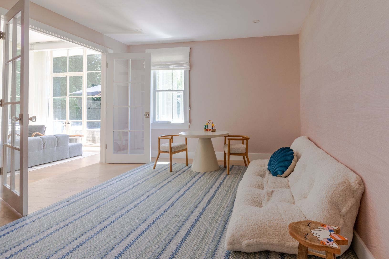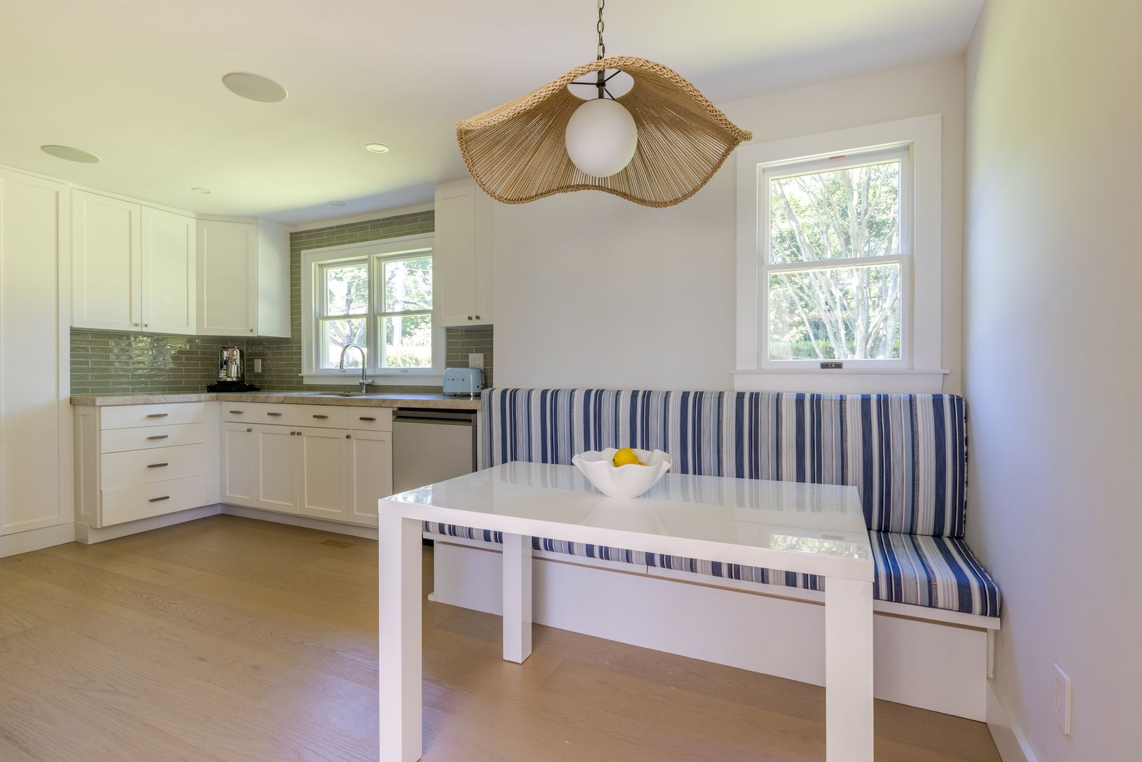 Set on an enchanting, tree-lined street just moments from East Hampton Village, this classic c.1950 Hamptons residence by award-winning architect Michael Haverland offers 3,500 square feet of refined living. The home features four bedrooms and four-and-a-half baths, including a junior primary on the main level and a spacious upper-level primary with a seating area and spa-like bath. A dramatic double-height addition introduces vertical cedar c