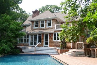 This lovely custom design five bedroom, five and one-half bath post modern home is set back on a beautifully landscaped 1.7+/- acre property on a quiet lane. The first floor features a junior master suite, library, great room, a large gourmet kitchen overlooking the back garden and pool, an adjacent sunroom, a separate dining room, two wood-burning fireplaces and a functional laundry room. Upstairs there are three guest bedrooms each with priv