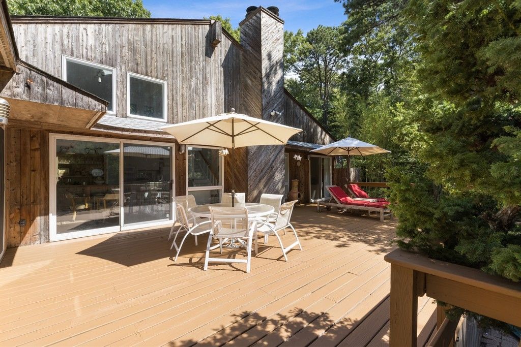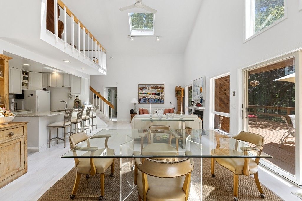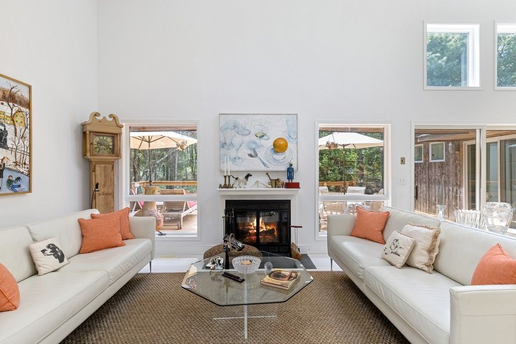 Beautifully situated on a quiet street, conveniently located between the Villages of Sag Harbor and East Hampton, this fantastic property features complete privacy and peacefulness. With gorgeous spaces throughout, the home features an open plan layout with double height ceilings in main living area, fabulous light-filling windows and a view to a beautiful pool. The main floor flows from a living room with a wood burning fireplace to a kitchen