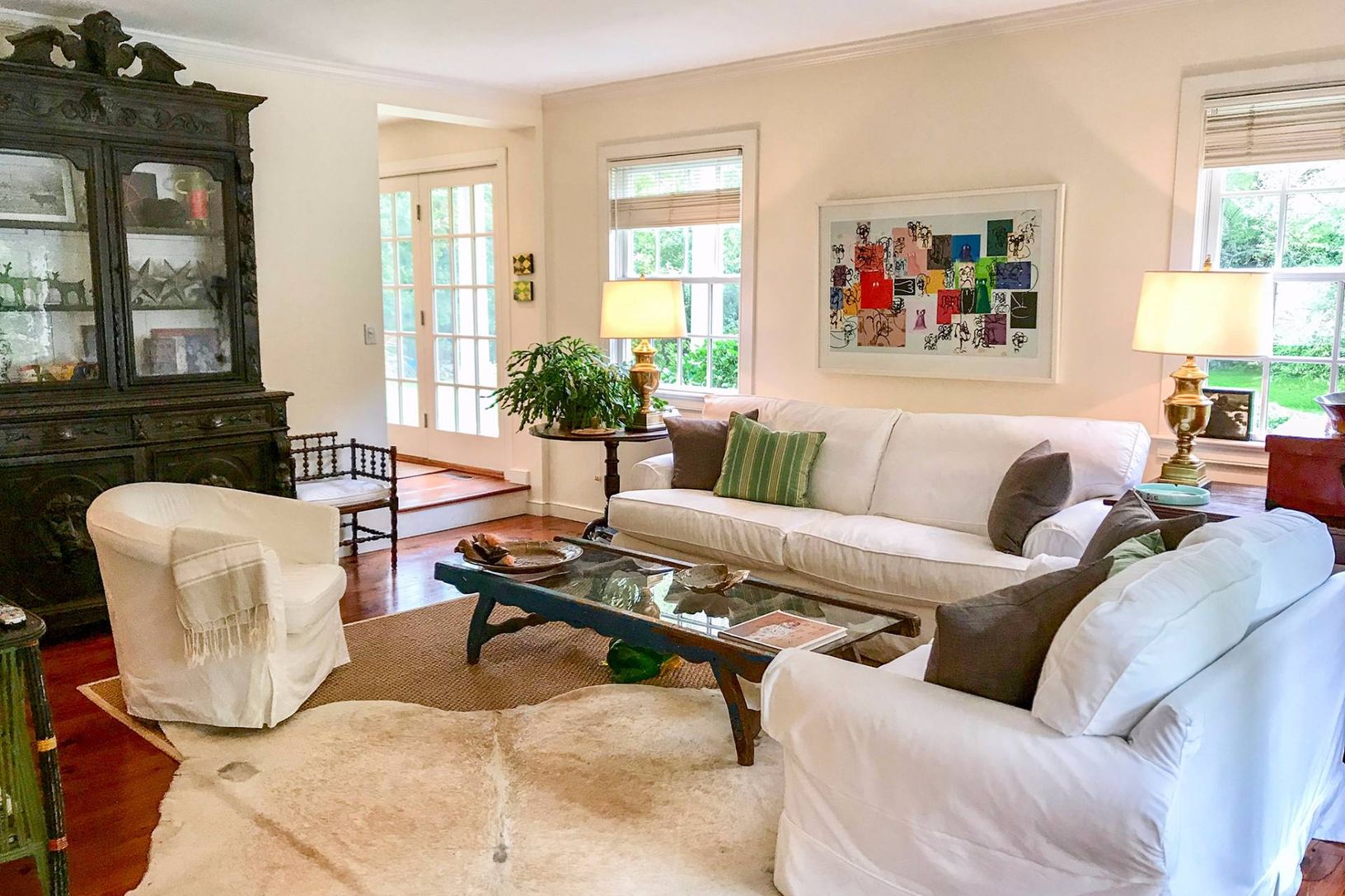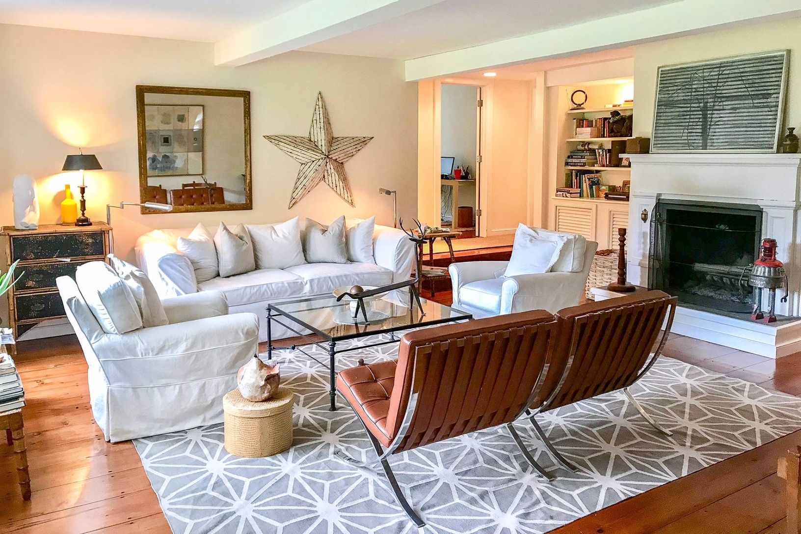 light filled, comfortable and south of the highway, offers four bedrooms, three and one-half baths, with a fireplace. Outdoors enjoy the heated pool, and plenty of places to soak up the sun or relax in the shade in the beautiful backyard. Centrally located minutes to ocean beaches, Bridgehampton's horse and wine country, and Sag Harbor Village.