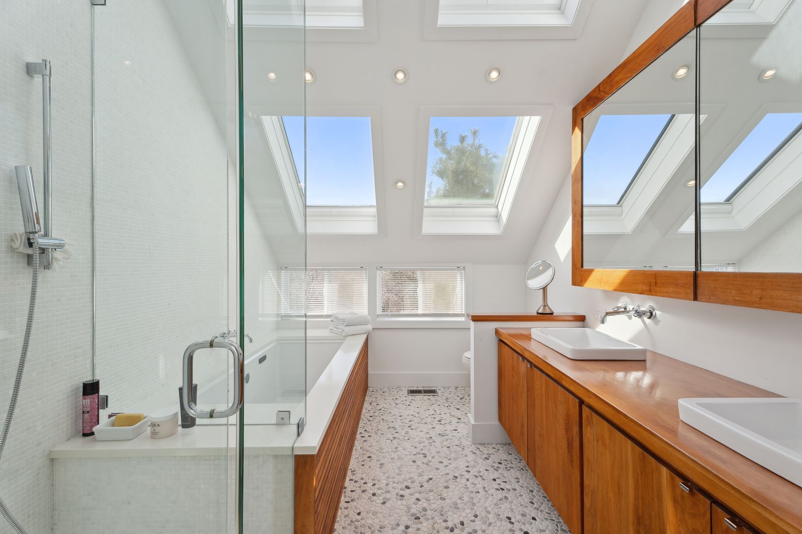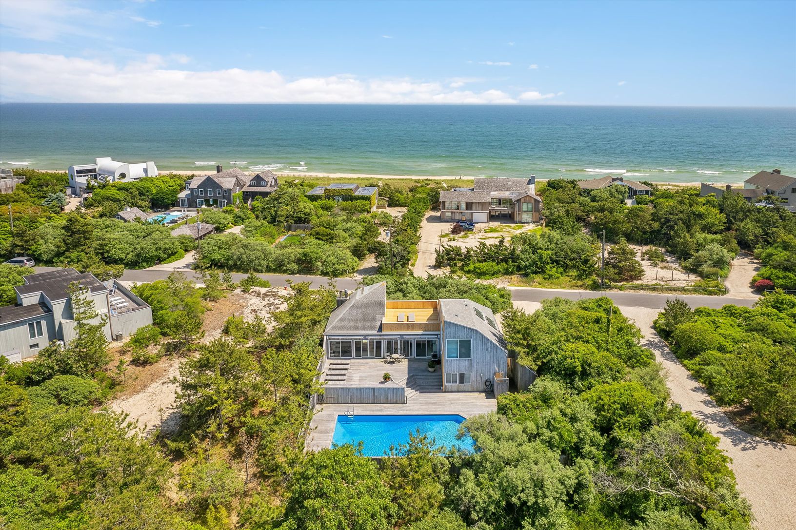 Ideally located just one block away from the ocean, this chic contemporary home is designed for those who appreciate sun-filled open spaces. The inviting open floor plan seamlessly connects the living room with a gourmet kitchen, creating a perfect setting for both relaxation and entertainment. Enjoy the beautiful outdoor areas, featuring a 20x40 heated pool, expansive deck, pergola, and a roof deck with breathtaking ocean views. The circular