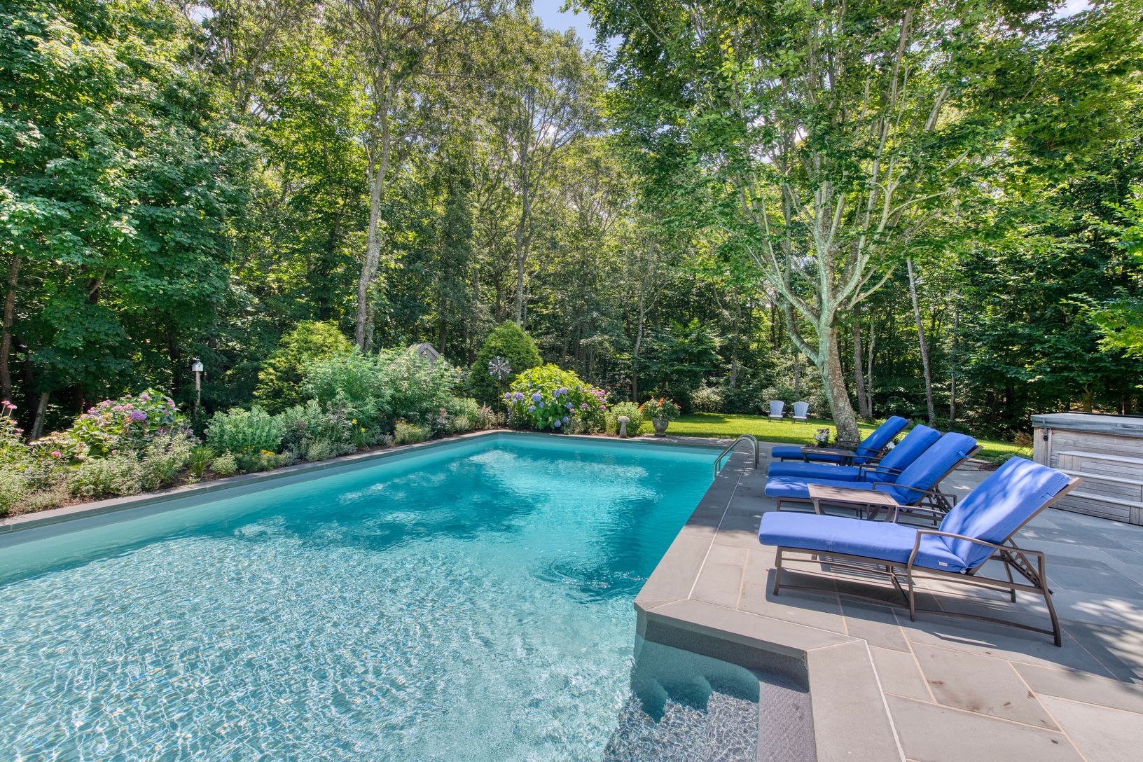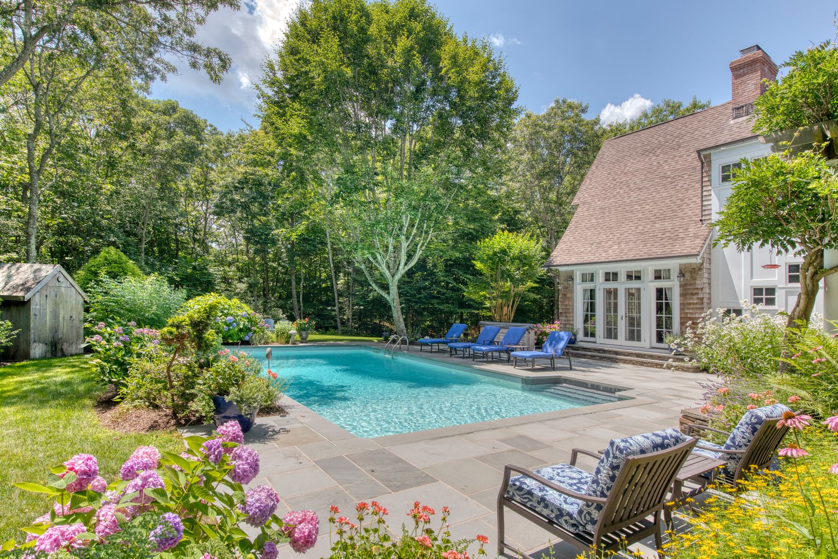 Located on two bucolic acres with mature trees creating ample privacy and flowering gardens that give way to an impeccable 3,267 sq. sf. residence. Offering three bedrooms, three full and one half bath. The first floor is comprised of a large country kitchen with granite countertops and stainless appliances, an adjacent dining room able to comfortably seat 10 - 12 people, sunken great room with fireplace and room for an office area. The light-