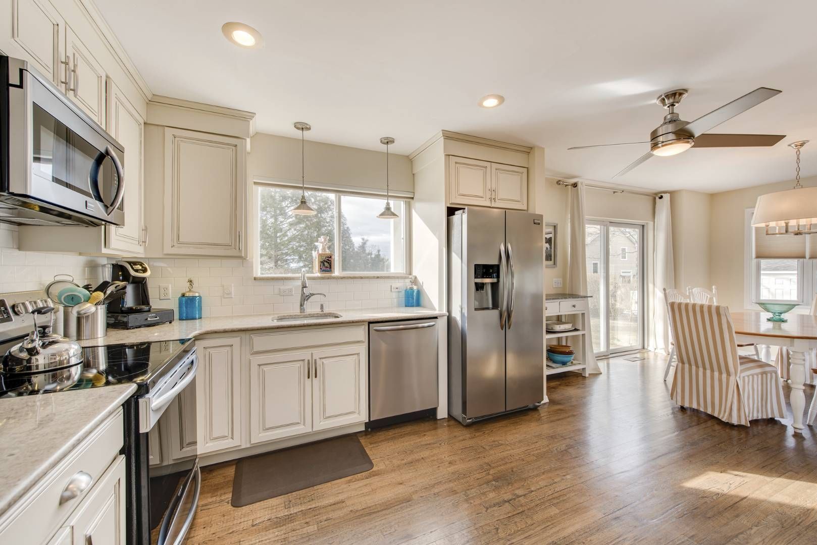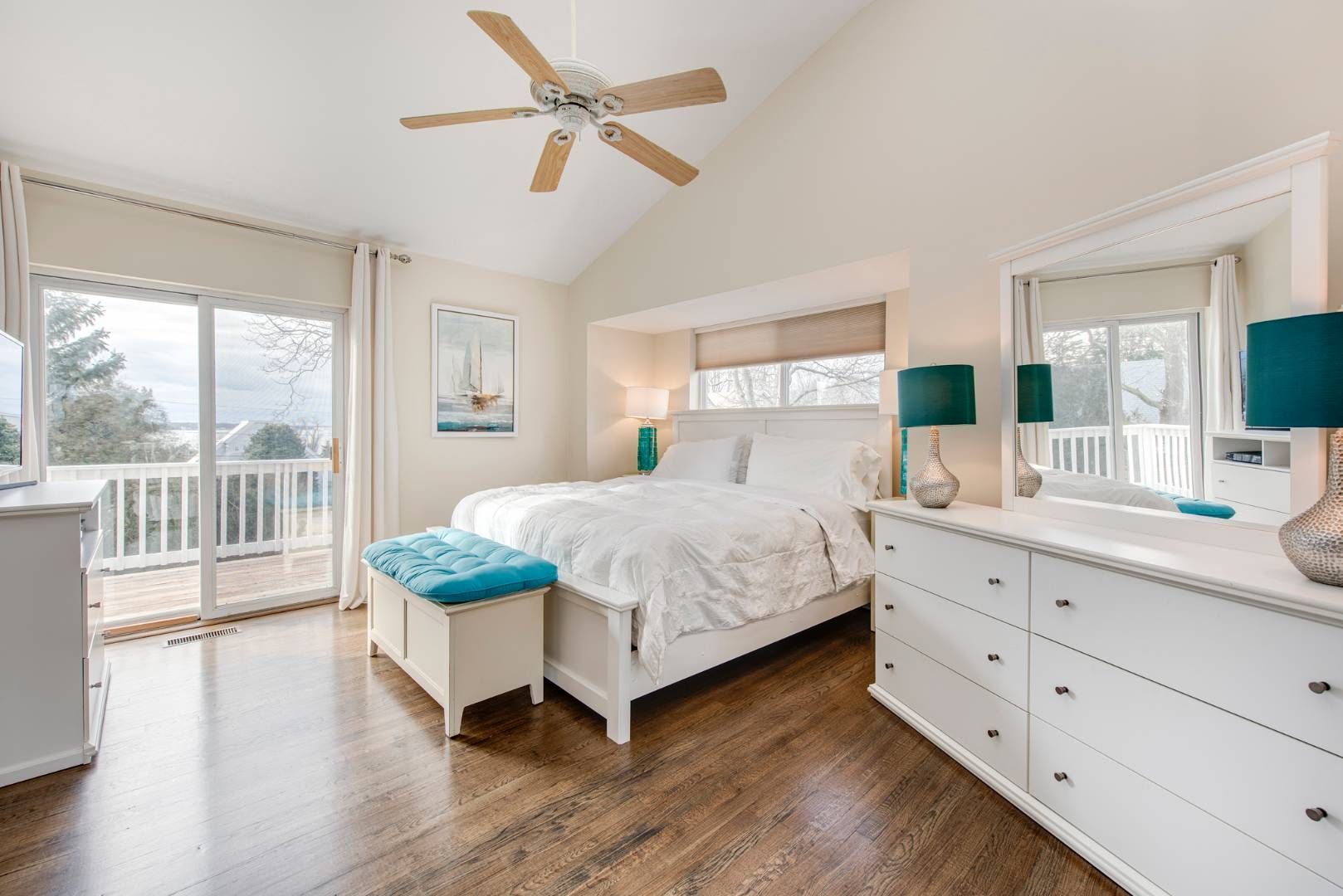 Own a home with water views in Sag Harbor's waterfront community of Bay Point where you can watch the boats or, enjoy 365 days of sunsets. This 3-bedroom home has been meticulously maintained. You can cook in the renovated kitchen or barbecue on the stone patio outside. When it's time to relax the house has a large living room with a wood-burning fireplace and there's also a den so you can all pick your spot. The master suite has a deck where