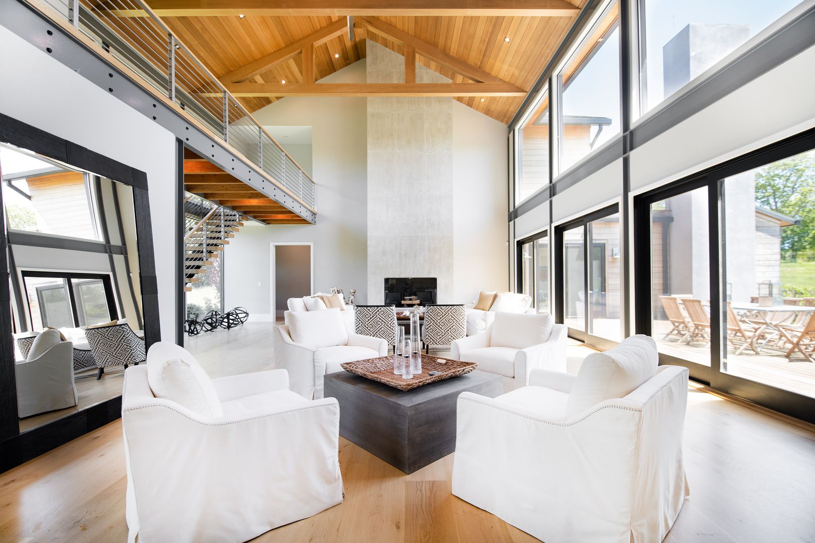 Experience Luxury Living Year Round in Sagaponack. A long country drive leads to Debra Simon's newest masterpiece that has a "wow factor"" the moment you pull into the driveway. Modern paired with an industrial flare, the exterior architectural appeal lures you in to generous open spaces all flooded with natural light and custom statement details. Incredibly peaceful and private on 3.5+/- park like acres, the dramatic setting is further enhanc