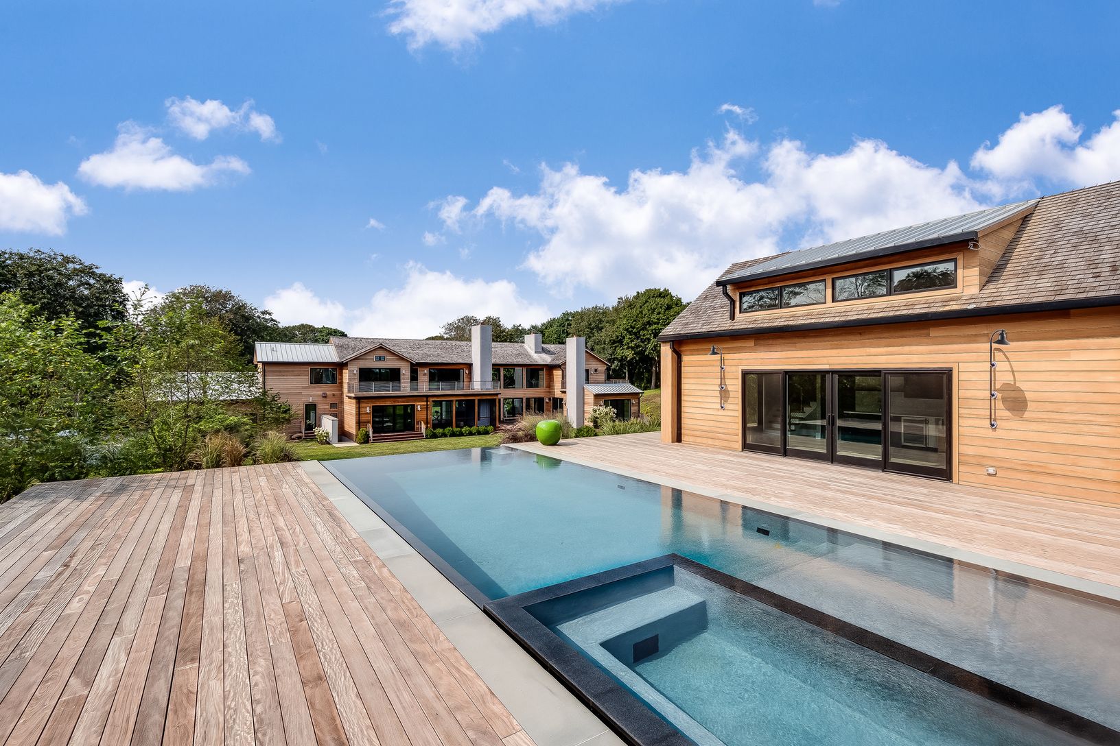 Modern styled barn, high quality construction, superbly sited on pristine parcel abutting 90-acre reserve. Over 3.5 +/- acres of land in the heart of Sagaponack with a 8,700 +/- square foot house is the ultimate in Hamptons luxury with the finest craftsmanship. Kitchen by Bakes and Kropp, spacious living room, six bedrooms, six baths and two powder rooms. Rolling lawn and infinity edge pool with two-story pool house.