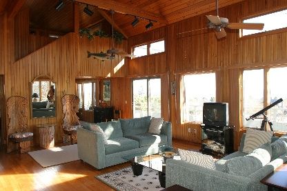 A stately three bedroom home perched high in Hither Hills which has two and a half baths, loft, great room, kitchen, dining area, and long wrap-around deck. Includes central air, laundry room, and hot water outdoor shower. A short distance to private, gated ocean beach.