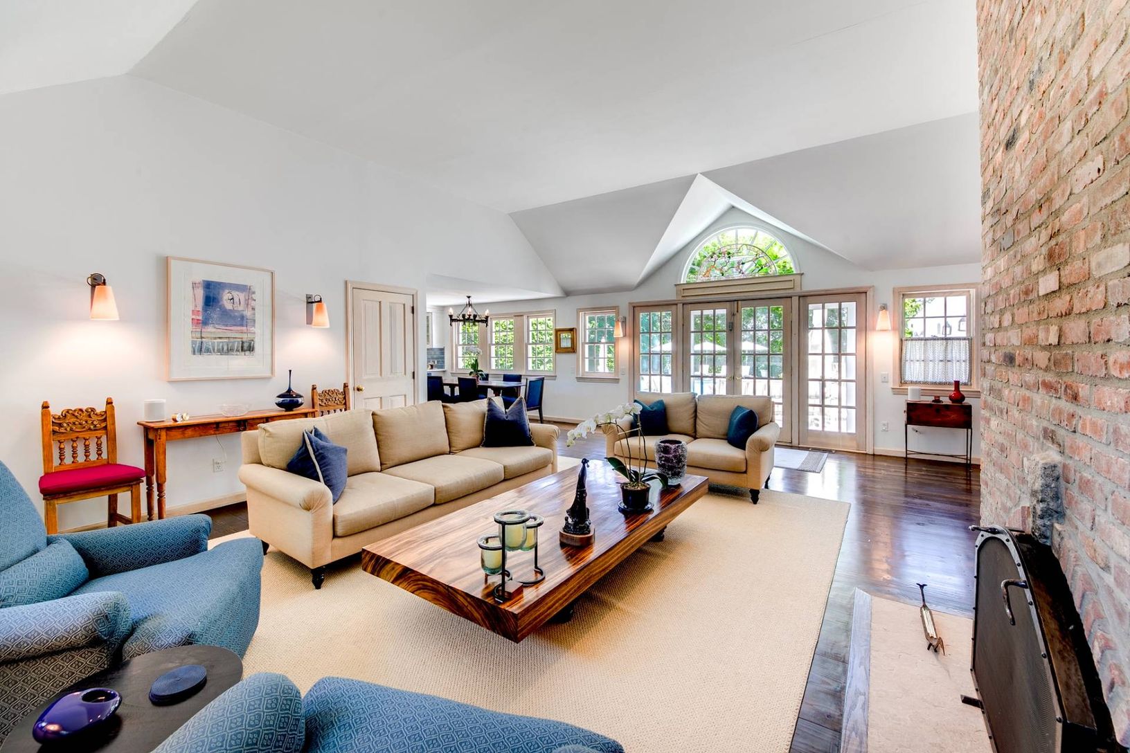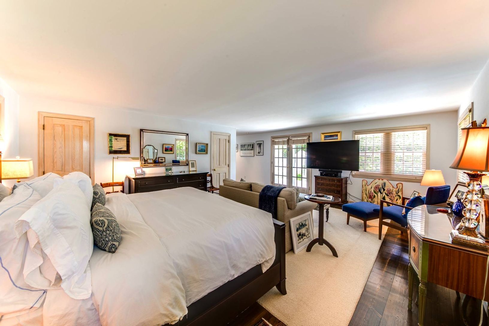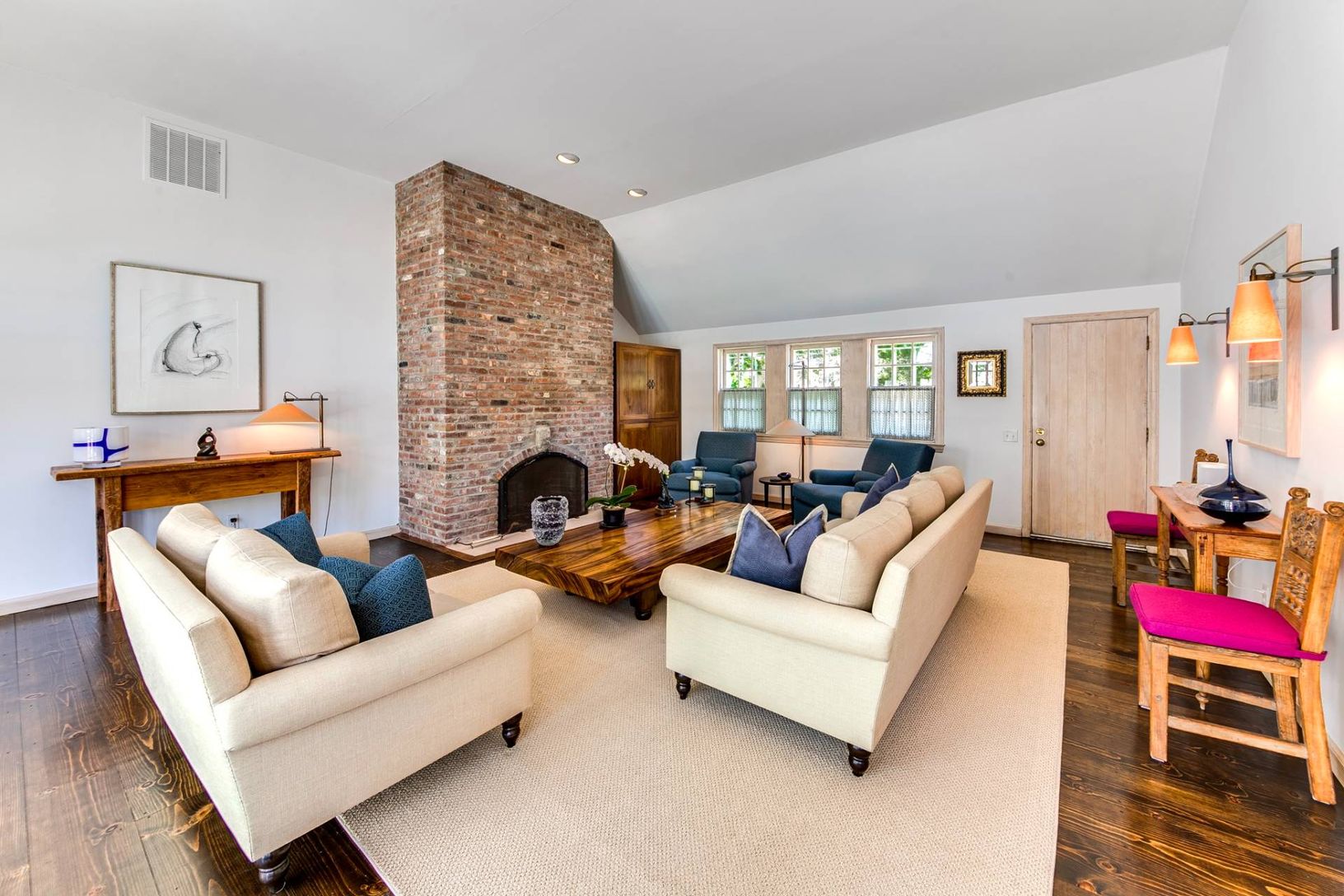 The home is tucked away on a quiet South of the Highway street in Bridgehampton Village, offering rare privacy and tranquility while minutes from Main Street. The single-level home is beautifully scaled with exceptionally well-proportioned living spaces. At its heart is a light-filled great room with soaring double-height ceilings, a wood-burning fireplace, and French doors that open to the sun-drenched backyard. For effortless entertaining, t