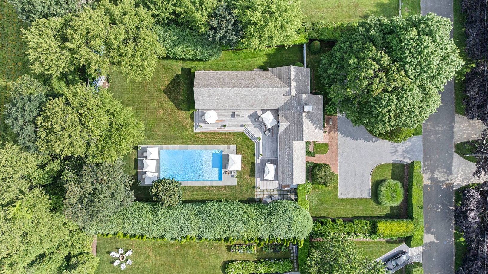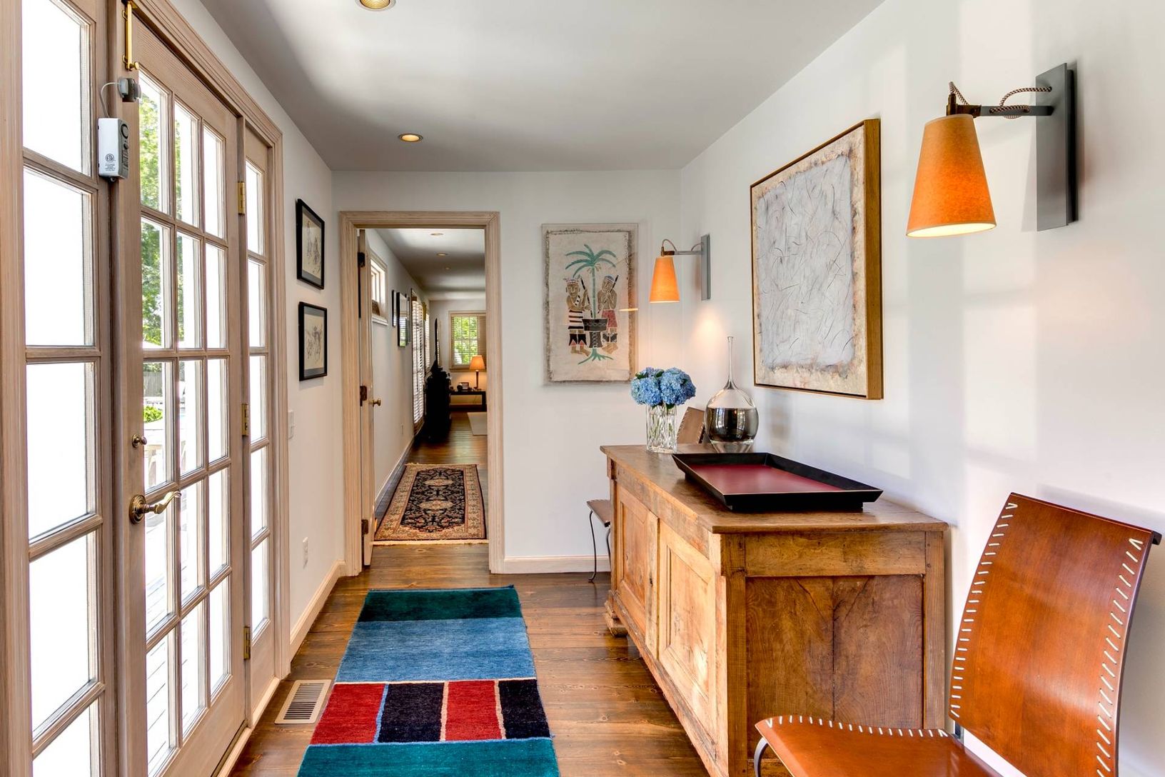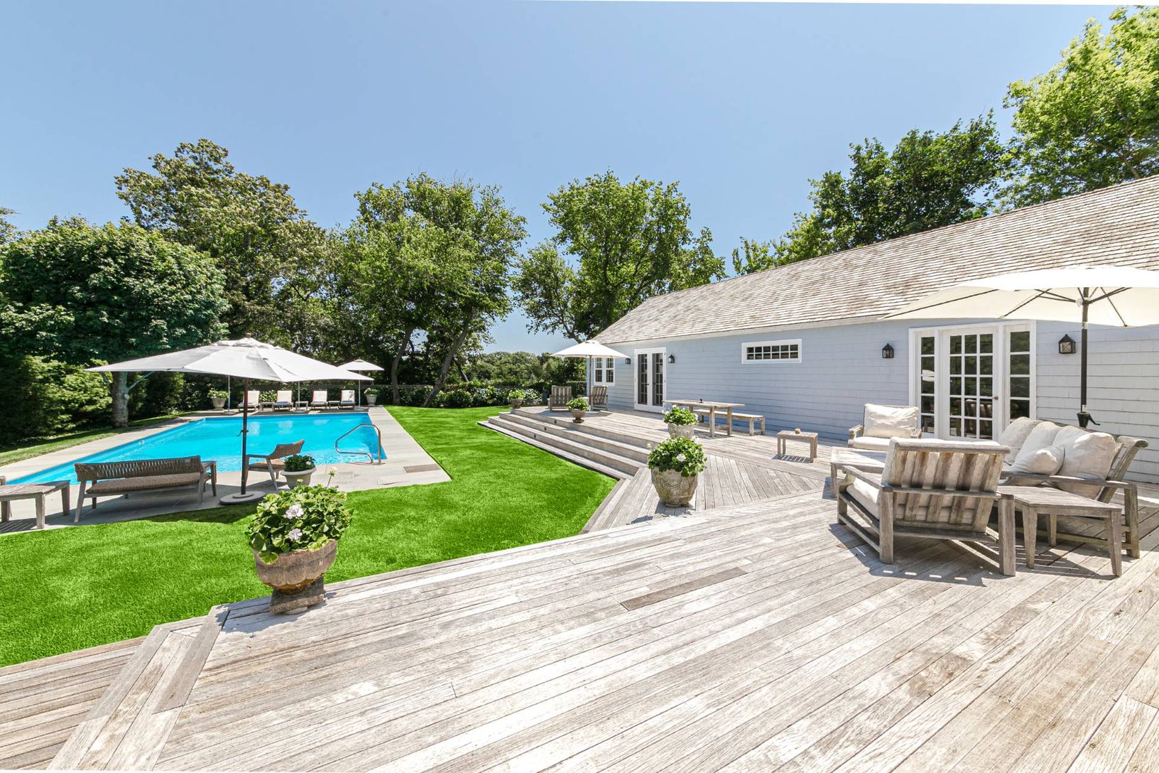 The home is tucked away on a quiet South of the Highway street in Bridgehampton Village, offering rare privacy and tranquility while minutes from Main Street. The single-level home is beautifully scaled with exceptionally well-proportioned living spaces. At its heart is a light-filled great room with soaring double-height ceilings, a wood-burning fireplace, and French doors that open to the sun-drenched backyard. For effortless entertaining, t