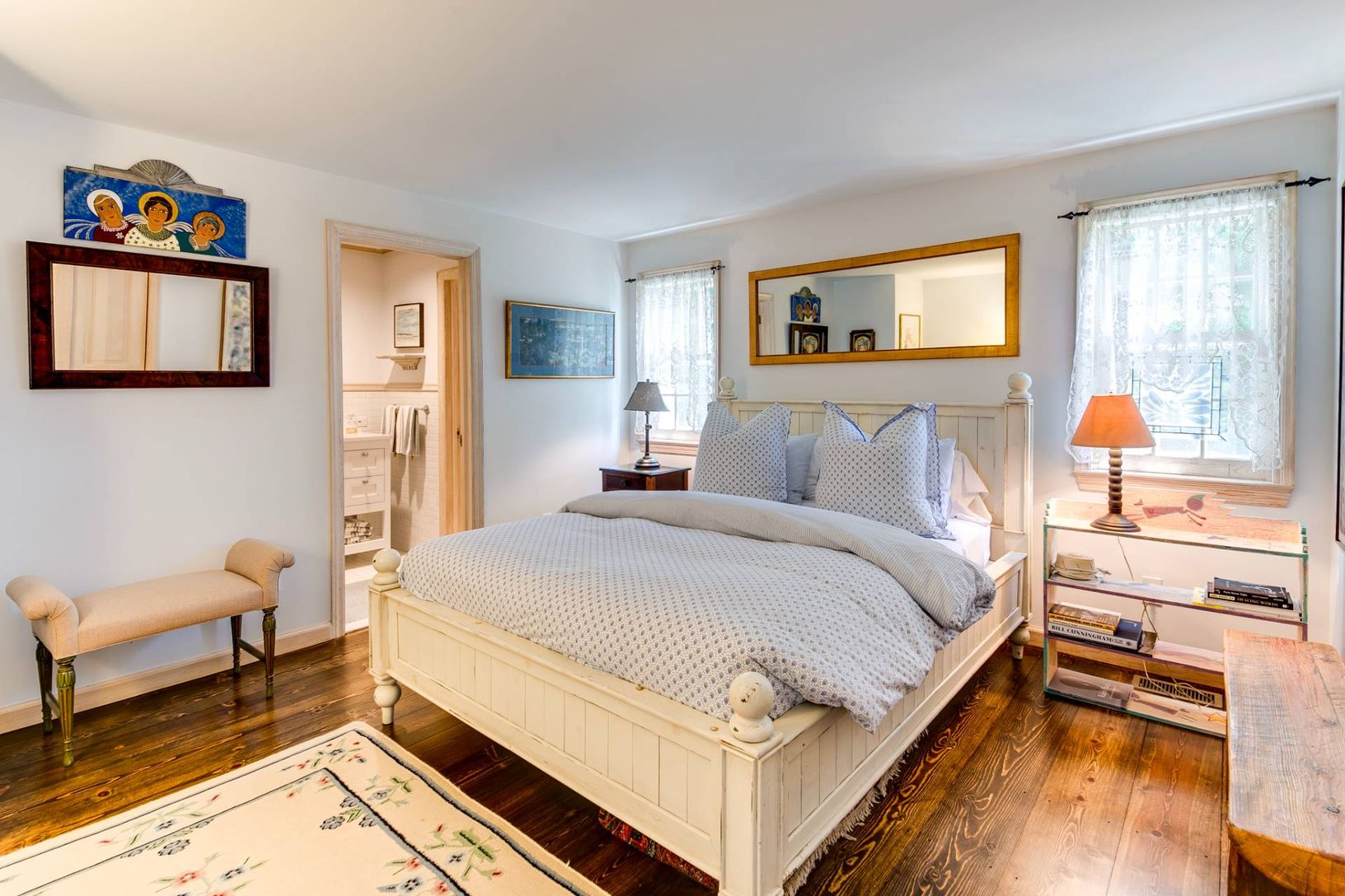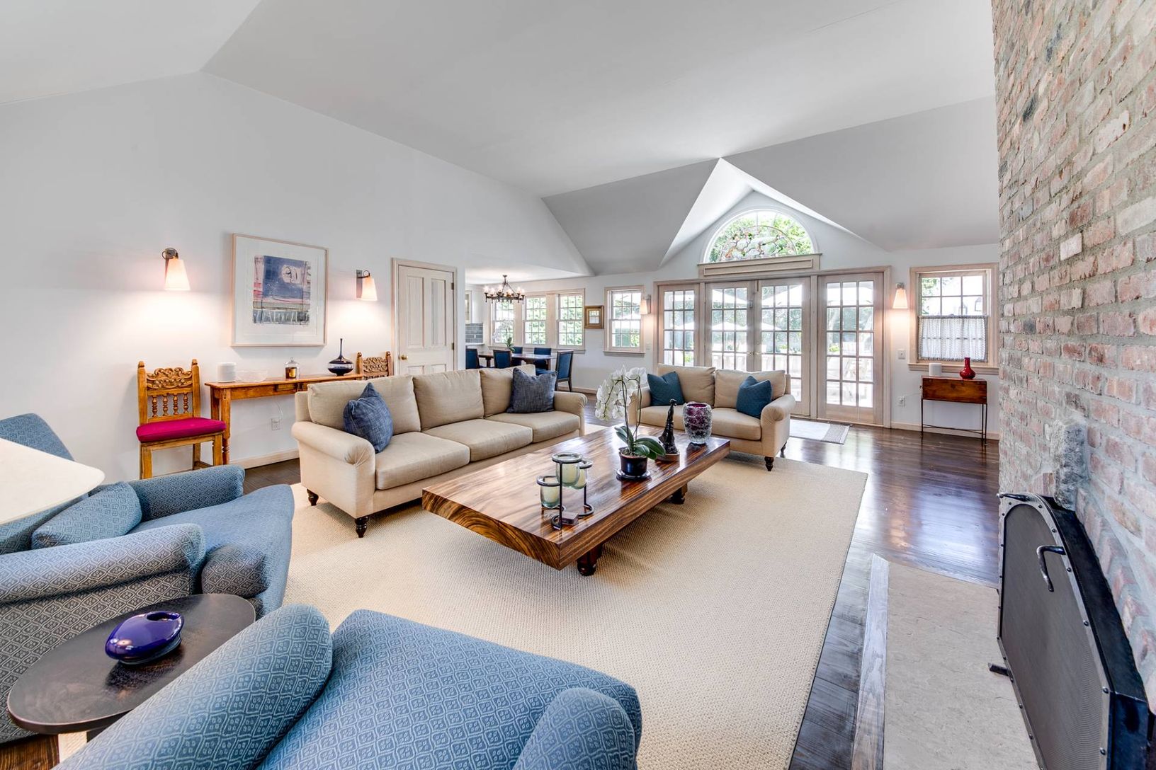 Nestled on a tranquil cul-de-sac in one of Bridgehampton's most coveted locales, this pristine village home offers an ideal retreat for the summer. Thoughtfully designed for effortless living, this elegant 4-bedroom residence features a seamless single-level layout. Interiors are bright and beachy with tall ceilings and a wood-burning fireplace in the living room. The kitchen includes a charming baby-blue backsplash along with premium applian