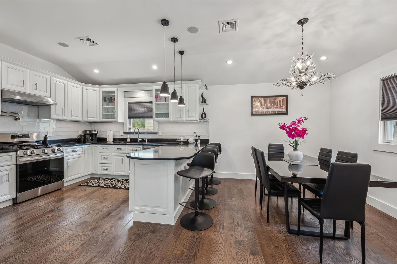Welcome to this beautifully renovated 1,200 SF home nestled in the idyllic Village of Southampton. This charming residence, updated in 2022, features 3 bedrooms and 3.5 baths, including a newly added powder room in 2024. Upon entering, you'll find a spacious living room that seamlessly connects with the kitchen and dining area, creating an inviting open-concept space. Elegant white oak flooring graces the entire home, while the living room off
