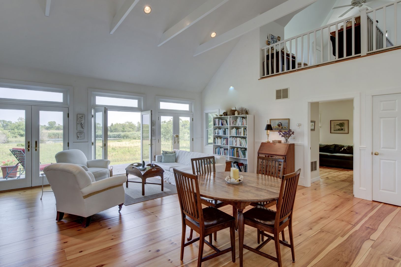 Contemporary Farmhouse located on 6.71 private acres of breathtaking land on Narrow River Road in Orient. House overlooks what was the Hallock's Farm Ice Pond. Mint condition home has 3 bedrooms, open 2nd floor studio, wood burning fireplace, two screened porches, open kitchen / LR/ Dr common area with vaulted ceilings that flows onto large deck through 3 French doors. Beautiful natural light with stunning views from every room makes this a