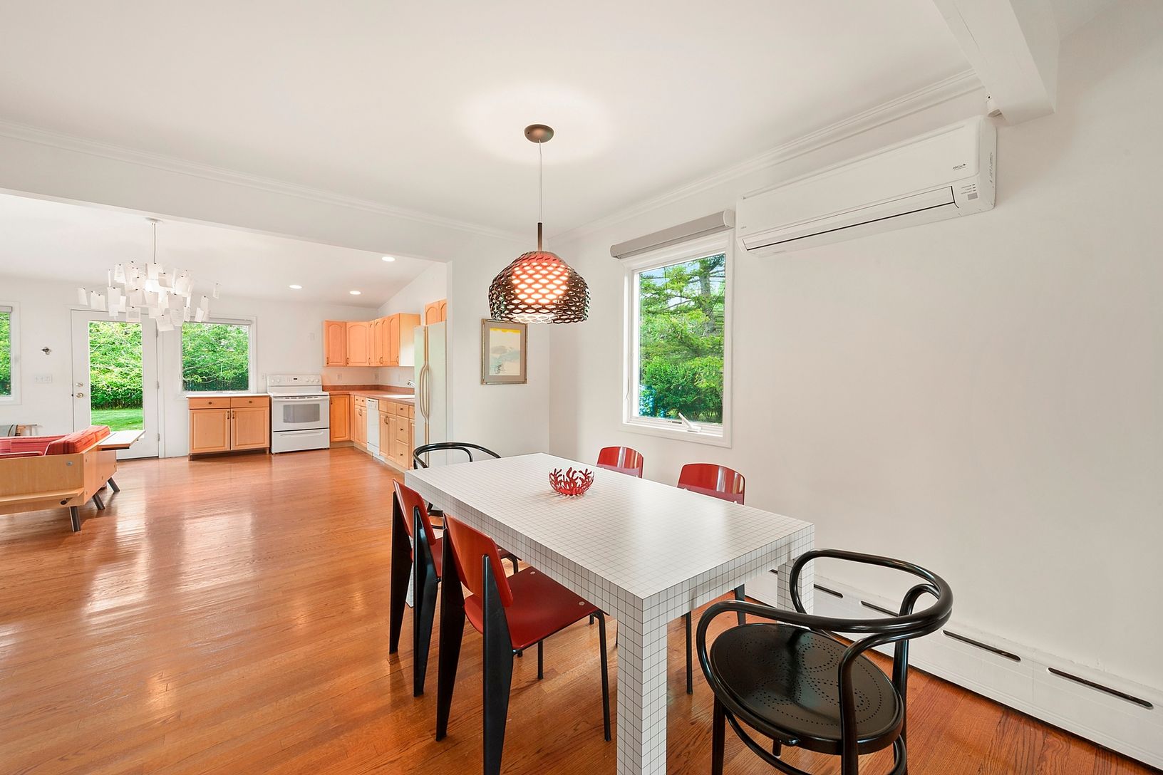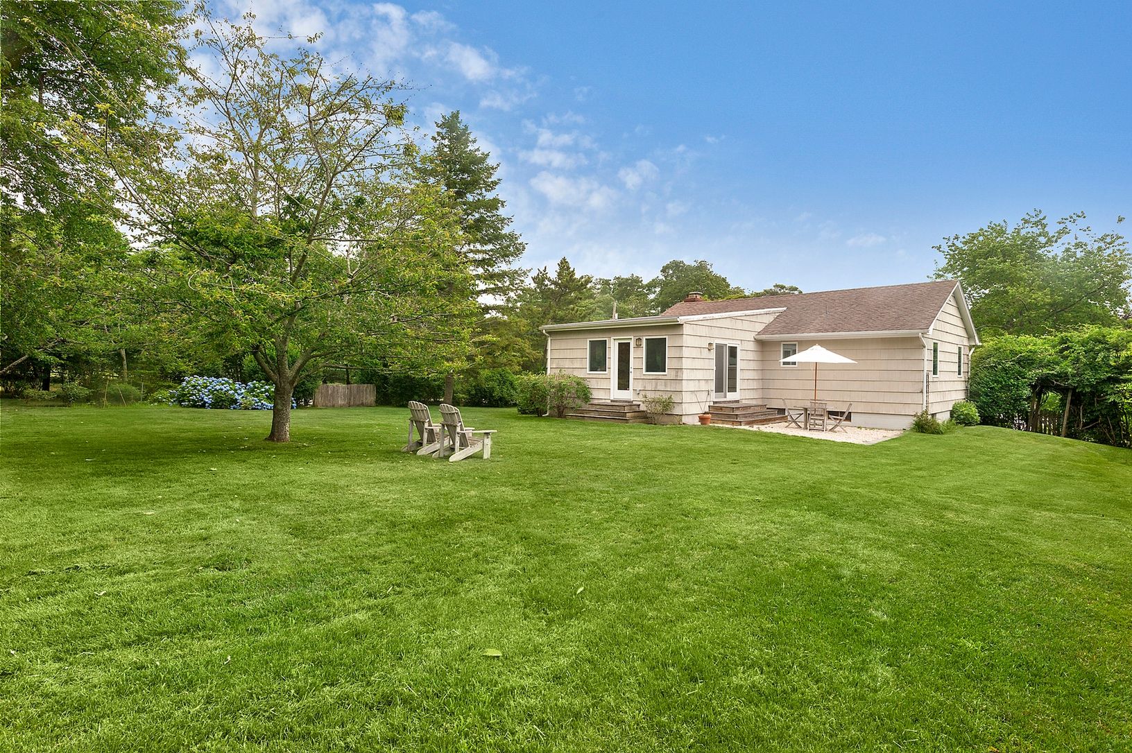 Move right into this delightful sun filled home. Open loft plan with charming living space, wood burning fireplace and views of the garden from every window. The grounds have mature landscape, outdoor patio, room for a pool and expansion and farm views across the street. Convenient proximity to Village center, and world class ocean beaches. Make this your new weekend and summer getaway!