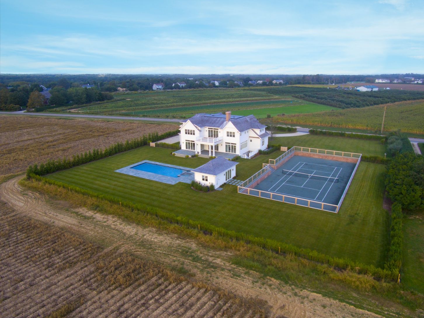 Nestled on 1.5 acres amid the farm fields of Southampton sits a new luxury residence brought to you by Breskin Development. Surrounded by more than 90 acres of agricultural reserve, not only does every window of this 6,400-square-foot home look out onto picturesque farm views, but the estate comes with a guarantee of total privacy for years to come. A great central location just under 2 miles to Southampton Village Main St. and famed ocean b