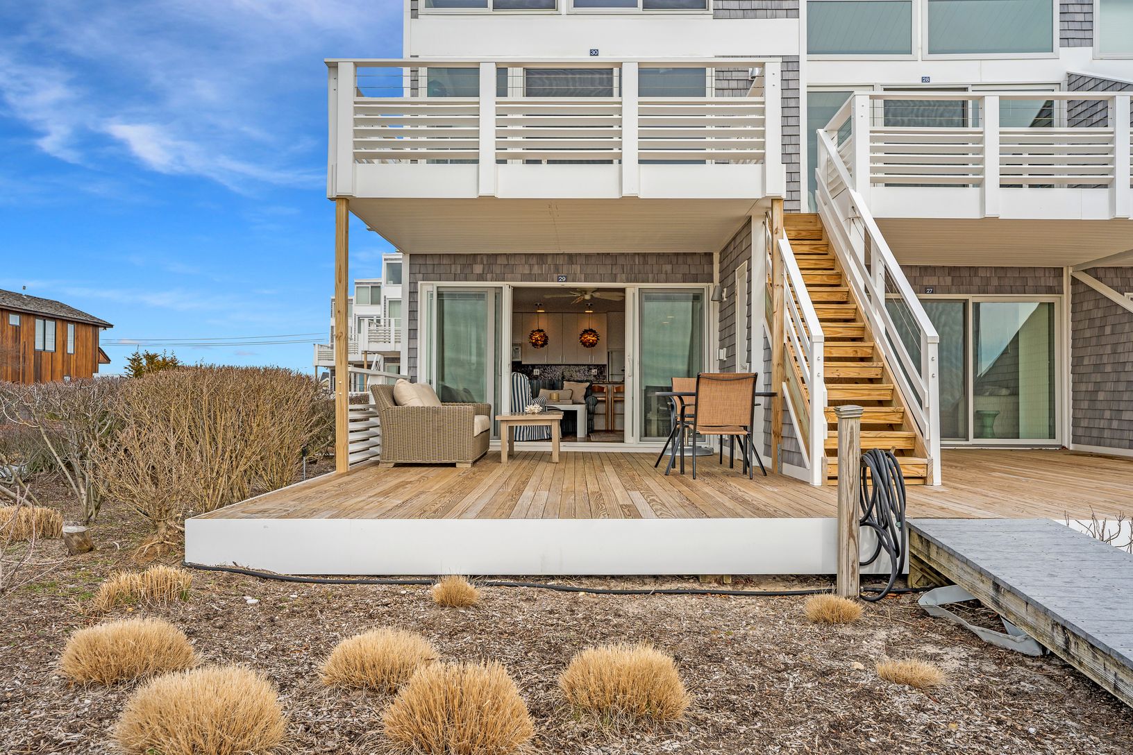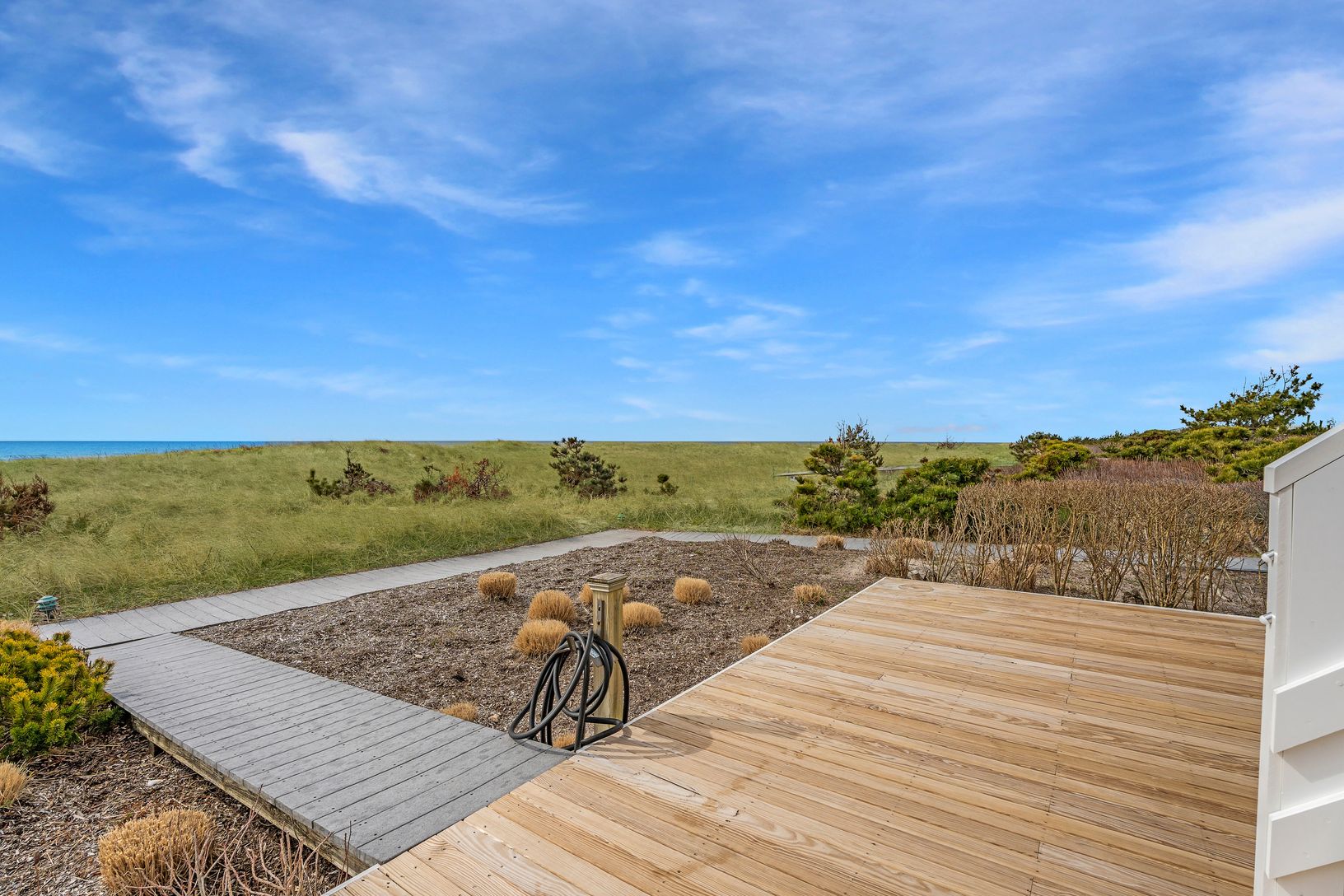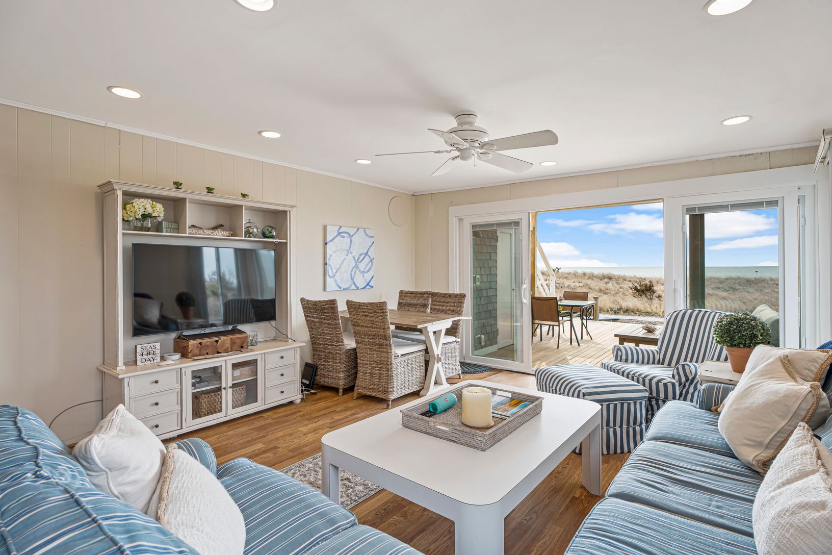 Spend a glorious July at 539 Dune Road, Unit 29 in the newly renovated Seascape! This corner unit offers ocean views right from your living room. Enjoy the beachy, open floor plan with living and dining areas and seating for 6 at the kitchen island. There are two bedrooms and two renovated baths including the primary bedroom with a Queen-sized bed and ensuite bath and the guest bedroom with a bunk bed with twin over Queen-sized mattresses. Enj