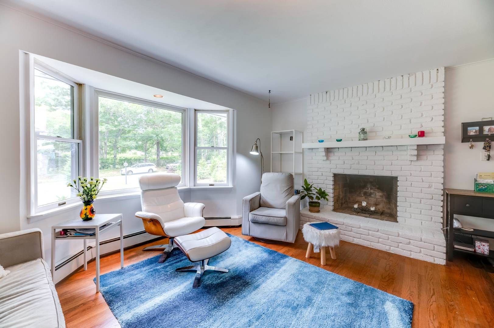 In a waterfront community just 3 minutes down the street to a private bay beach, this charming home with 3 bedrooms and 2 full baths is bright, immaculate and inviting, set in an expansive lawn with tall shade trees. Interiors feature hardwood floors and white walls and ceilings, and include living room with fireplace, dining, and updated kitchen with granite countertops and stainless steel appliances. A breezeway connects the garage to the ho