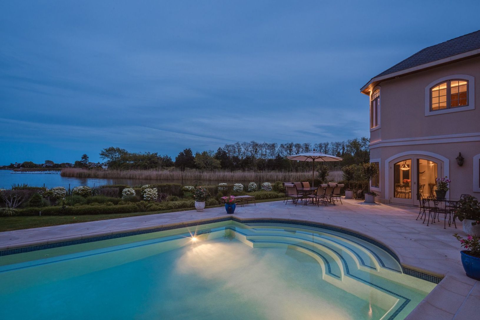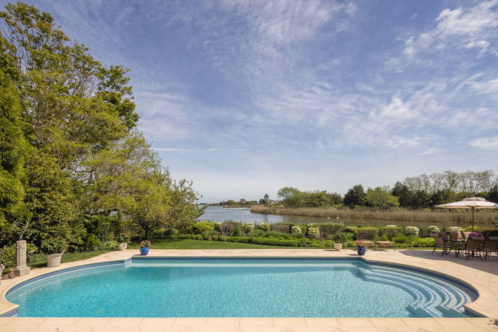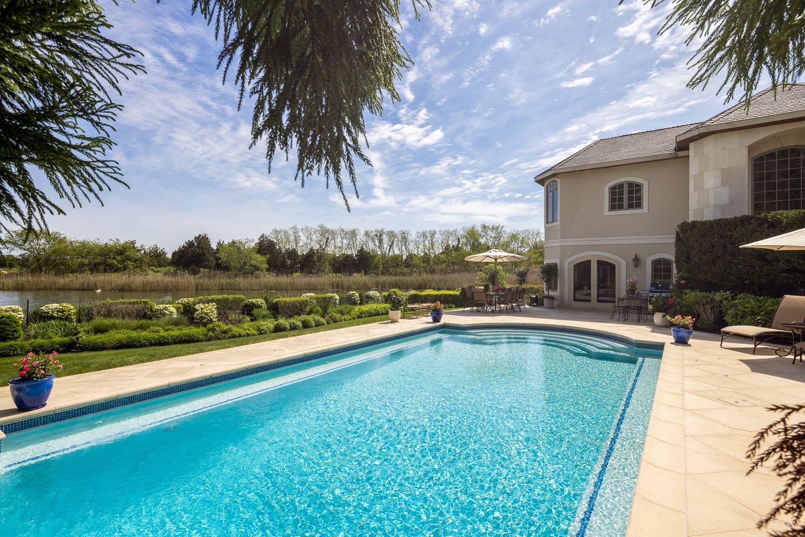 Enjoy a dreamy summer at 54 Cobb Isle Road! With breathtaking views over Mecox Bay and the Atlantic Ocean, this European inspired villa situated on idyllic Cobb Isle, is perfectly positioned on the bay with lush gardens and verdant grounds. This exceptional property was intentionally designed to facilitate the most important enjoyment in life; nature, entertainment, family, and friends. Experience the captivating beauty and feel of this magni