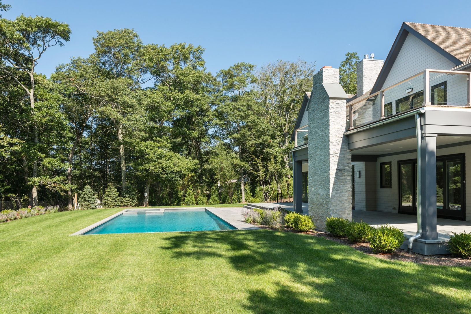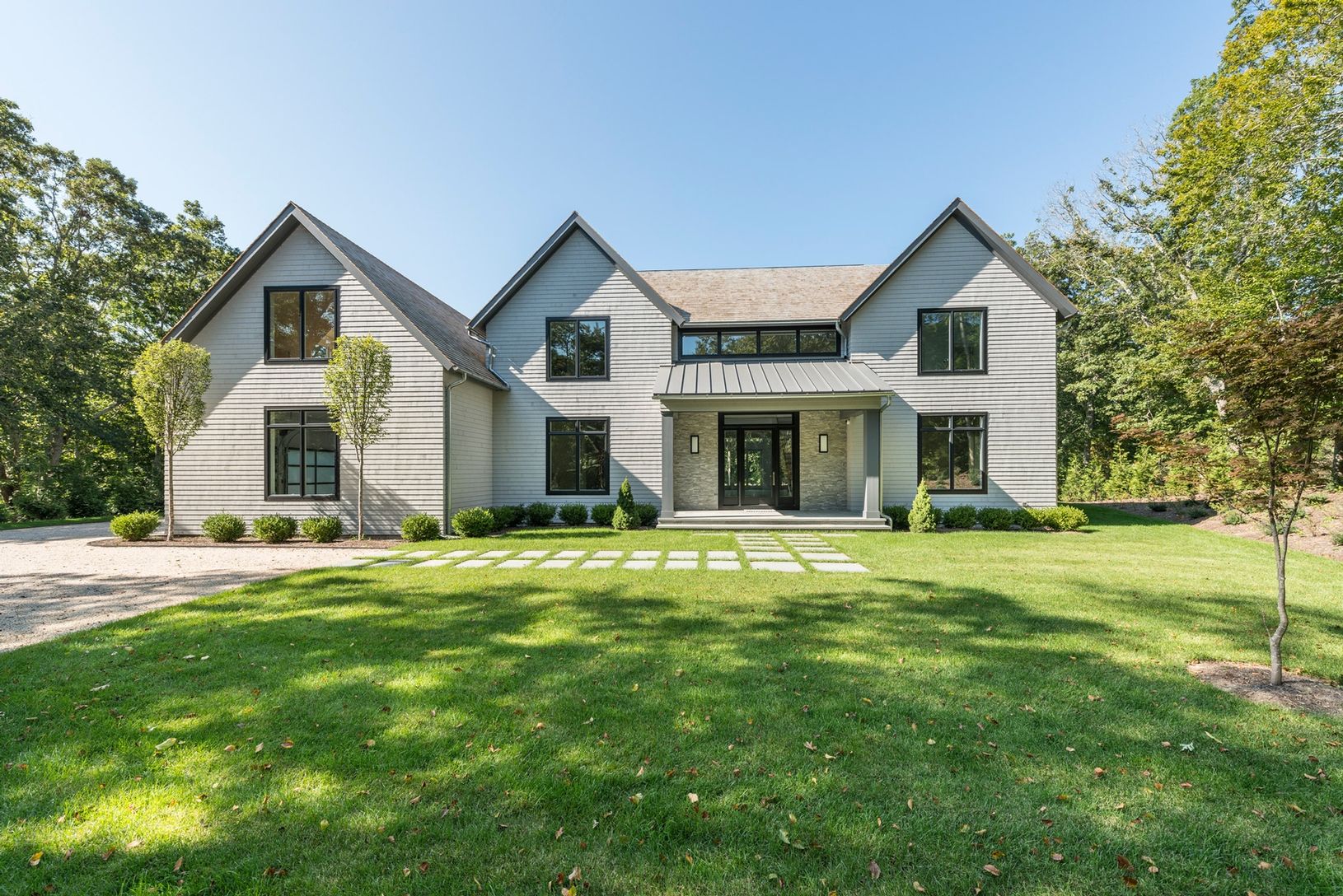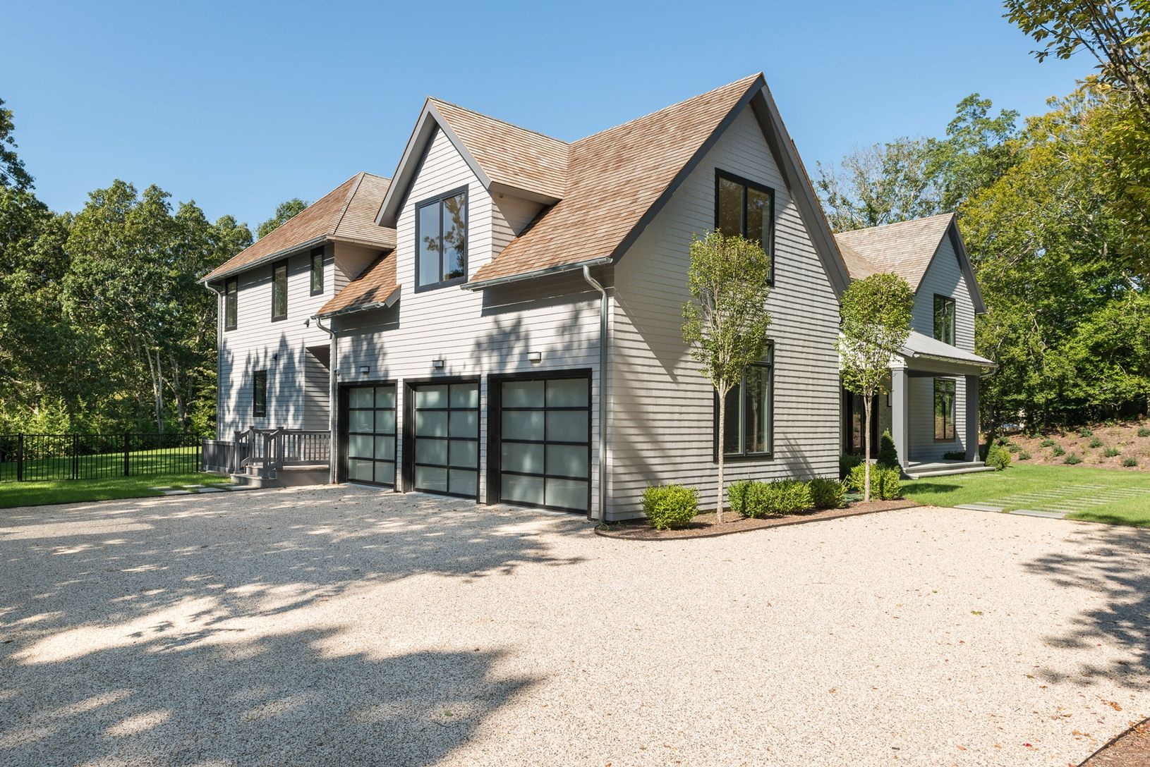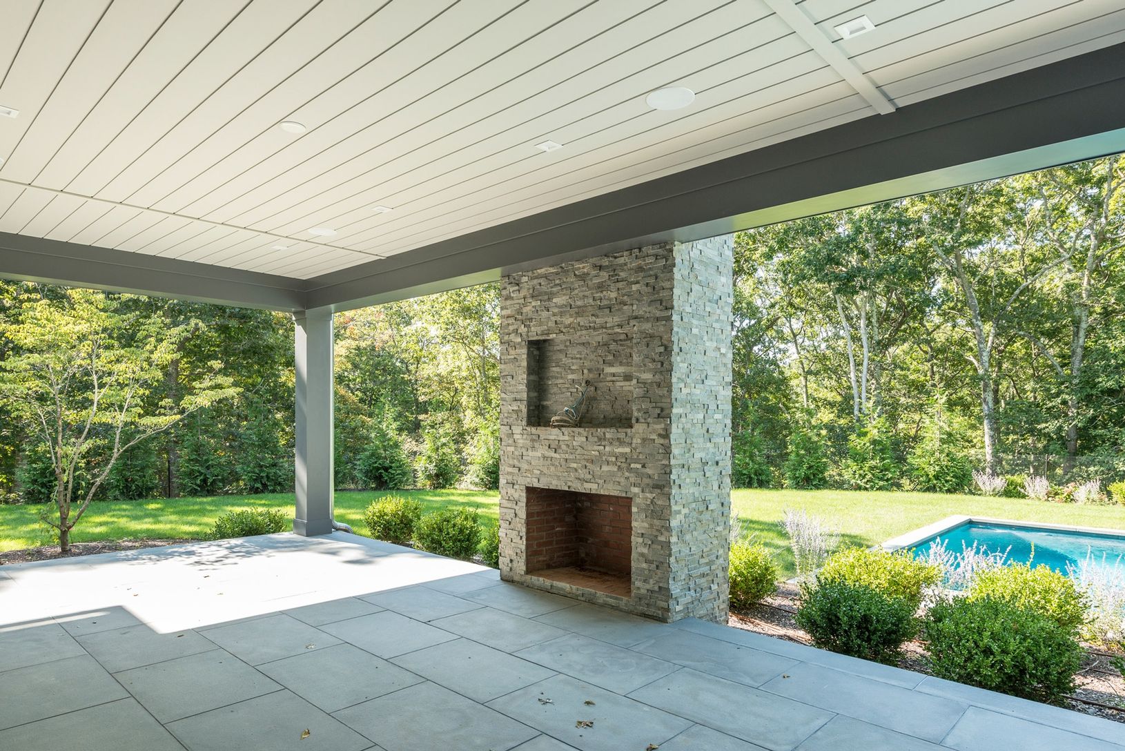 New construction 9,250+/- sq. ft. gabled traditional with modern farmhouse style on 1.8+/- acres in a bucolic setting offers both privacy and convenience. Enter the two story foyer with paneled walls and staircase with glass banister to light-filled, open living areas featuring walls of glass doors opening to a spacious bluestone patio and loggia with outdoor fireplace, media and speakers. The double height living room with soaring ceiling and
