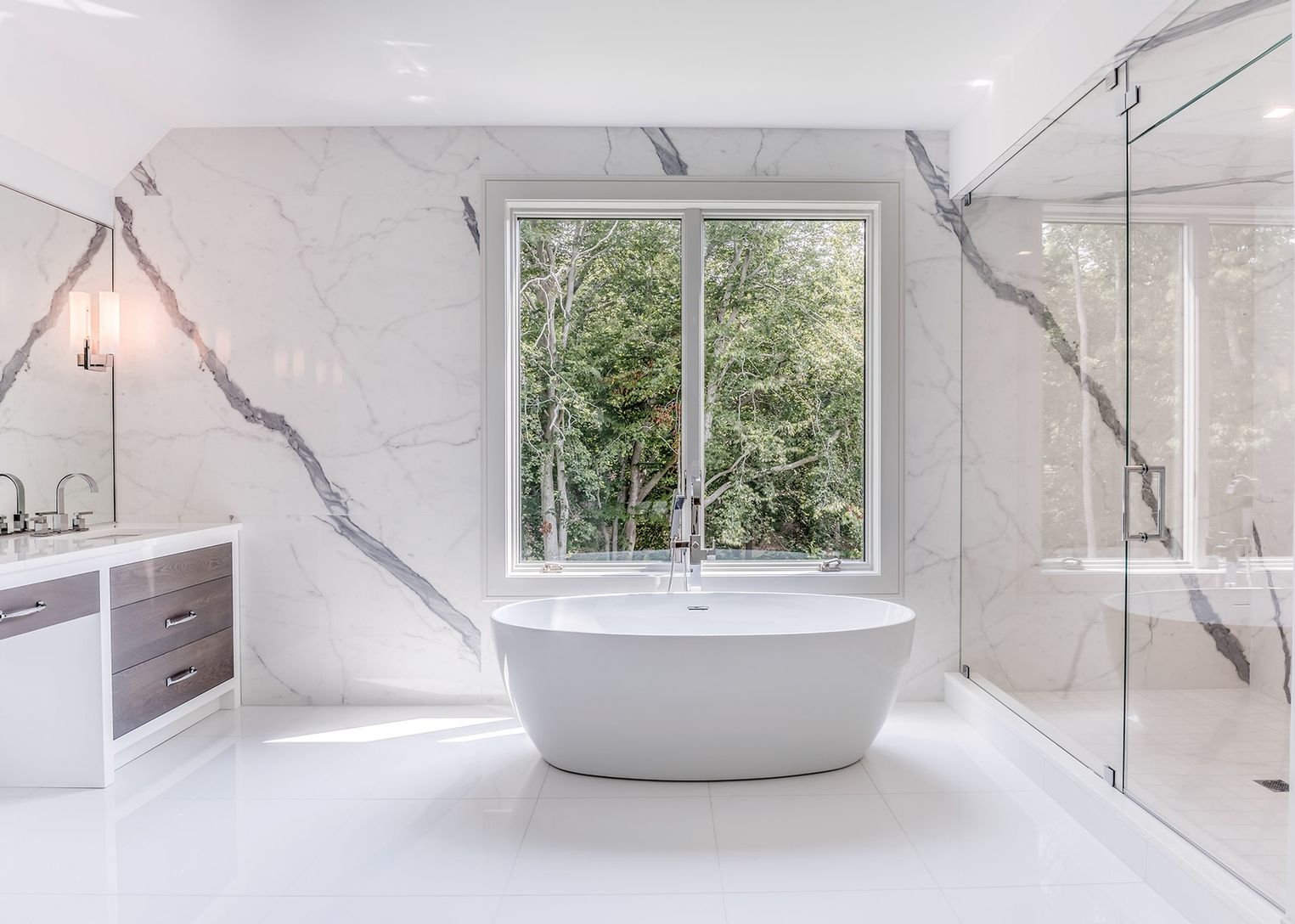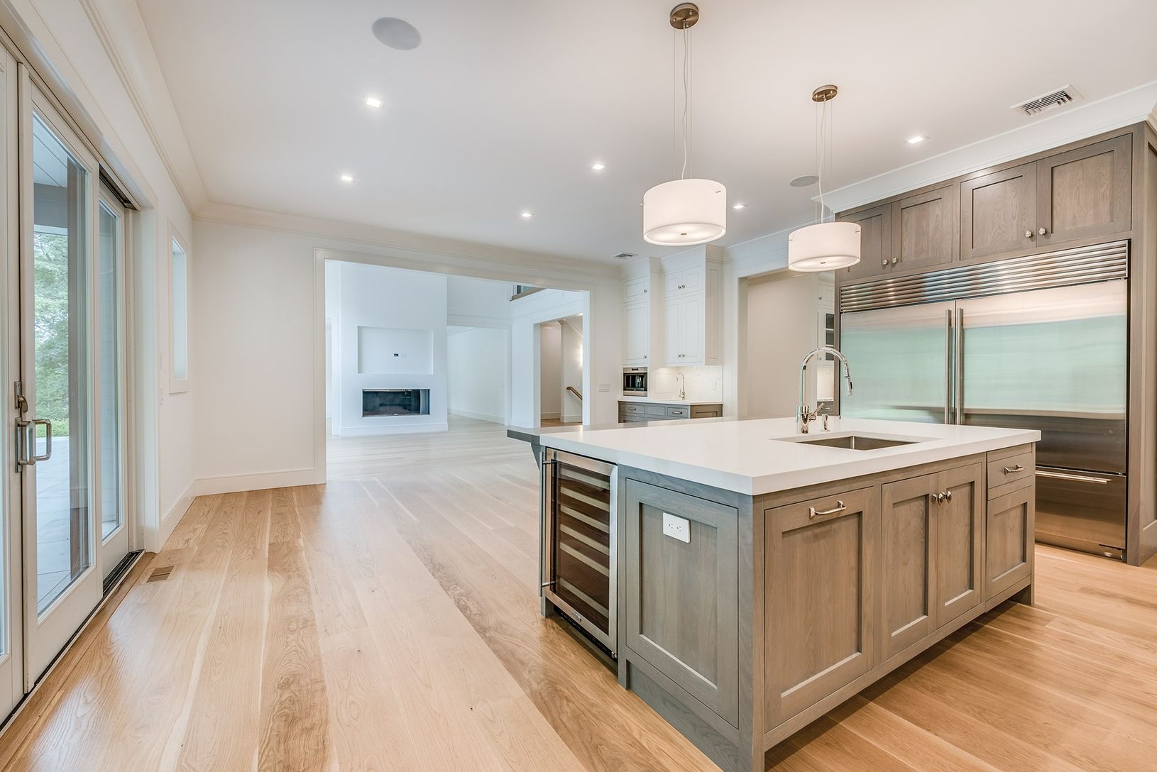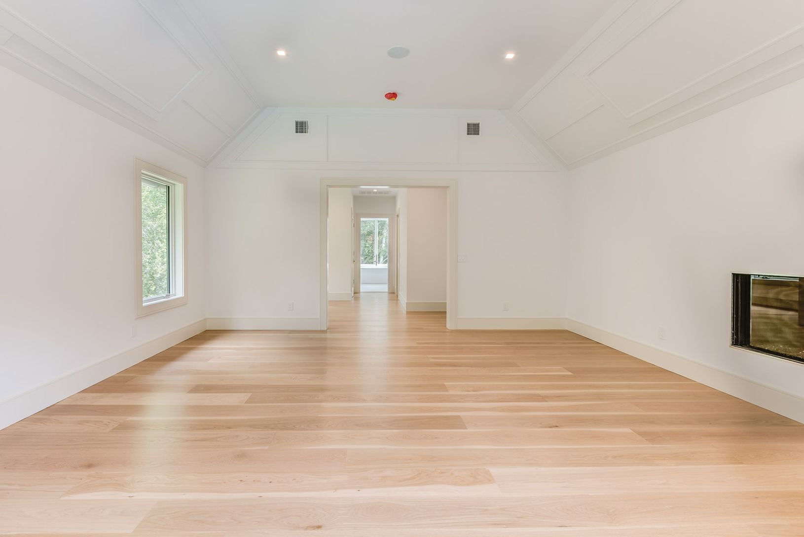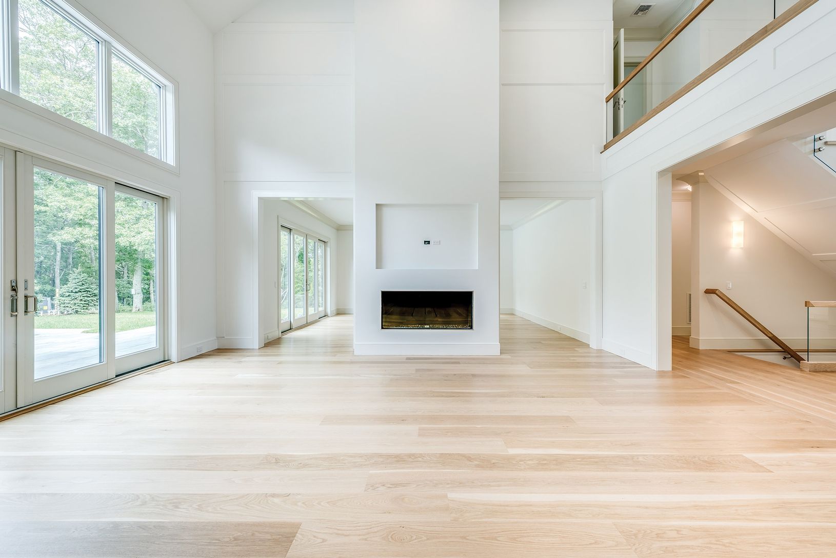 New construction 9,250+/- sq. ft. gabled traditional with modern farmhouse style on 1.8+/- acres in a bucolic setting offers both privacy and convenience. Enter the two story foyer with paneled walls and staircase with glass banister to light-filled, open living areas featuring walls of glass doors opening to a spacious bluestone patio and loggia with outdoor fireplace, media and speakers. The double height living room with soaring ceiling and