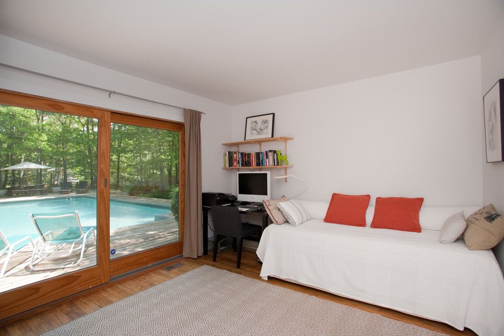 Light-filled architect designed modernist home features an open floor plan with 3 bedrooms, 2 baths, kitchen, dining room and living room with fireplace that faces a wall of glass with it's own private deck. The beautifully heated pool offers maximum seclusion and privacy and is well suited for entertaining. This home has been lovingly conserved by it's current owner, is centrally located between Sag Harbor and Bridgehampton village shops, r