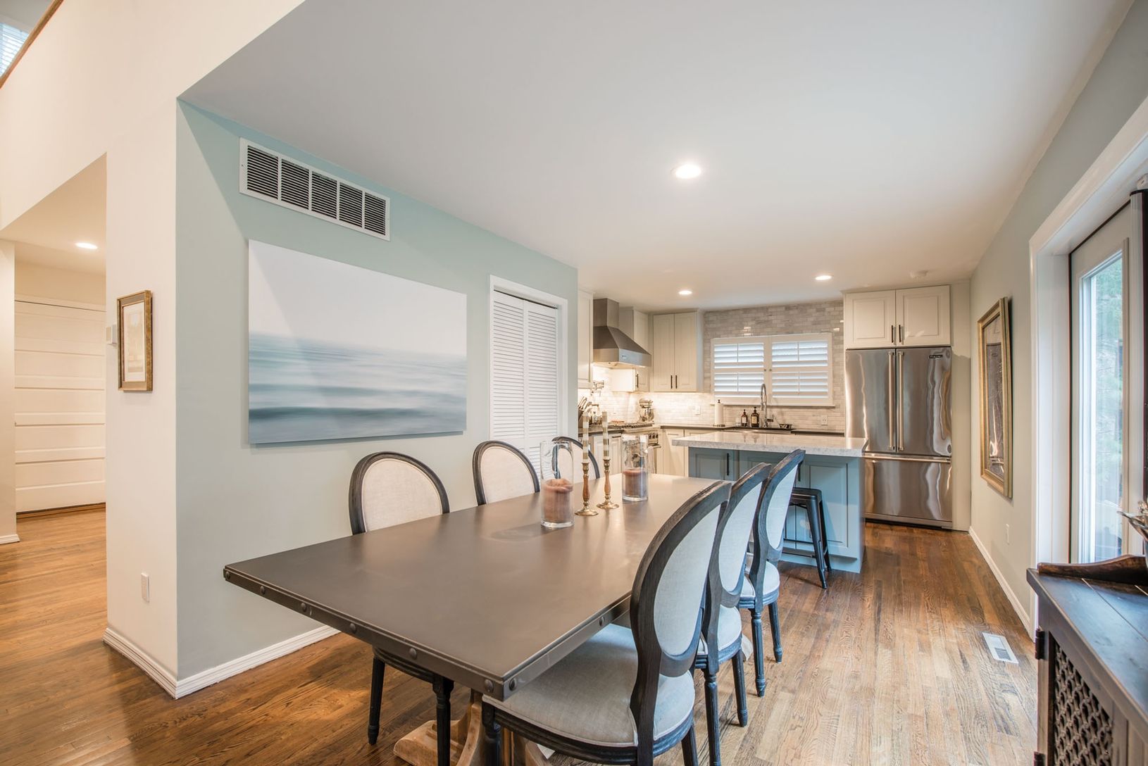 Perfectly situated 2.5 miles between Sag Harbor and the Village of East Hampton. This two-story saltbox has enjoyed many upgrades. Brand new full mahogany entrance with metal roof. Upgraded kitchen with Viking Professional appliances, including six burner dual-fuel range, wine cooler and much more. There is a honed granite countertop and double-edge Quartz island, as well as Italian Statuary backsplash. The island compliments an expansive are