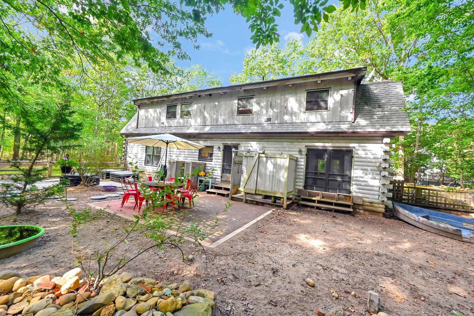 Charming cabin sitting on a private 1.2 acre flag lot. Surrounded by $4million dollar homes, this 2,100 sq.ft. home has four bedrooms with vaulted ceilings offering a dramatic sense of space. There are two full baths and one half bath, large living space, expansive wraparound porch and a 2 car attached garage. Plenty of room for expansion and pool. Close to Trout Pond, Mill Creek Marina and Long Beach.
