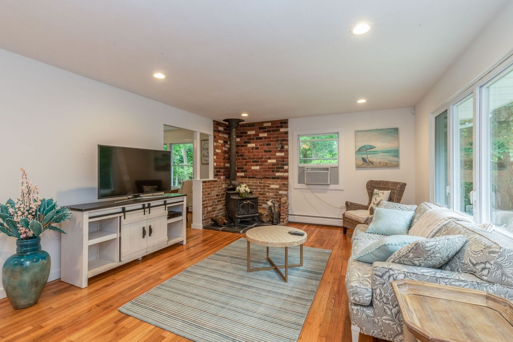 Recently renovated and now available for rent. A picturesque Ranch situated on over an acre +/- with three bedrooms, two baths, large living room with woodburning stove, a country kitchen with dining area. Very close to Southampton Village and ocean beaches.