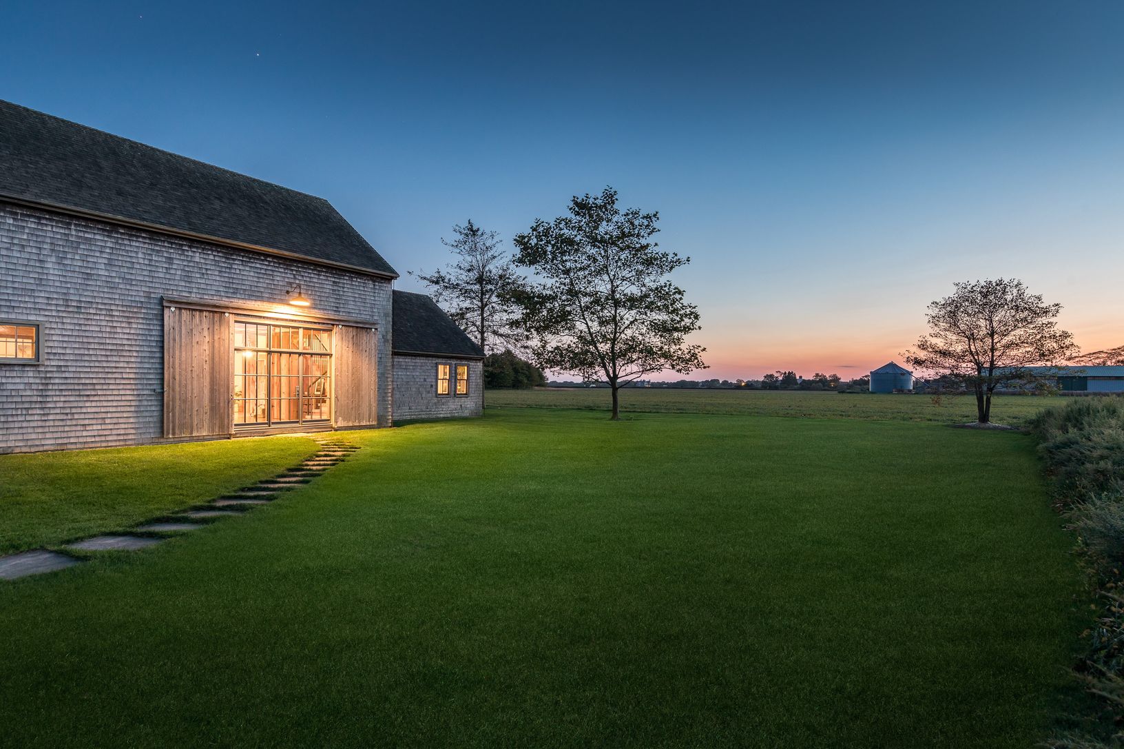 Few properties compare to this south of the highway farmhouse masterpiece, adjacent to 100+ acres of protected serene and pastoral farmland on idyllic Hedges Lane. Nestled on 1.75 acres and mere minutes from the Atlantic Ocean waves and white sandy beaches, this impressive 5,900+/- SF modern barn-style residence boasts sweeping western views with mesmerizing sunsets pierced with striking stripes of deep blue, purple, pink and orange. Among the