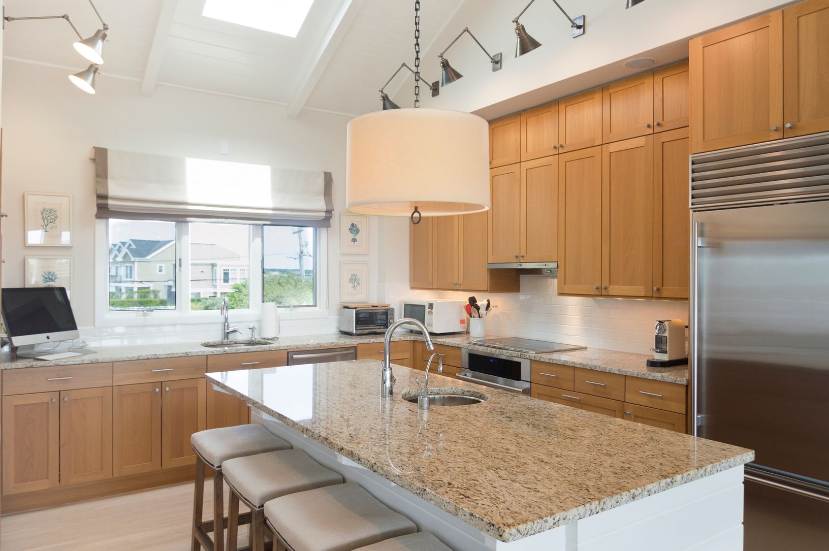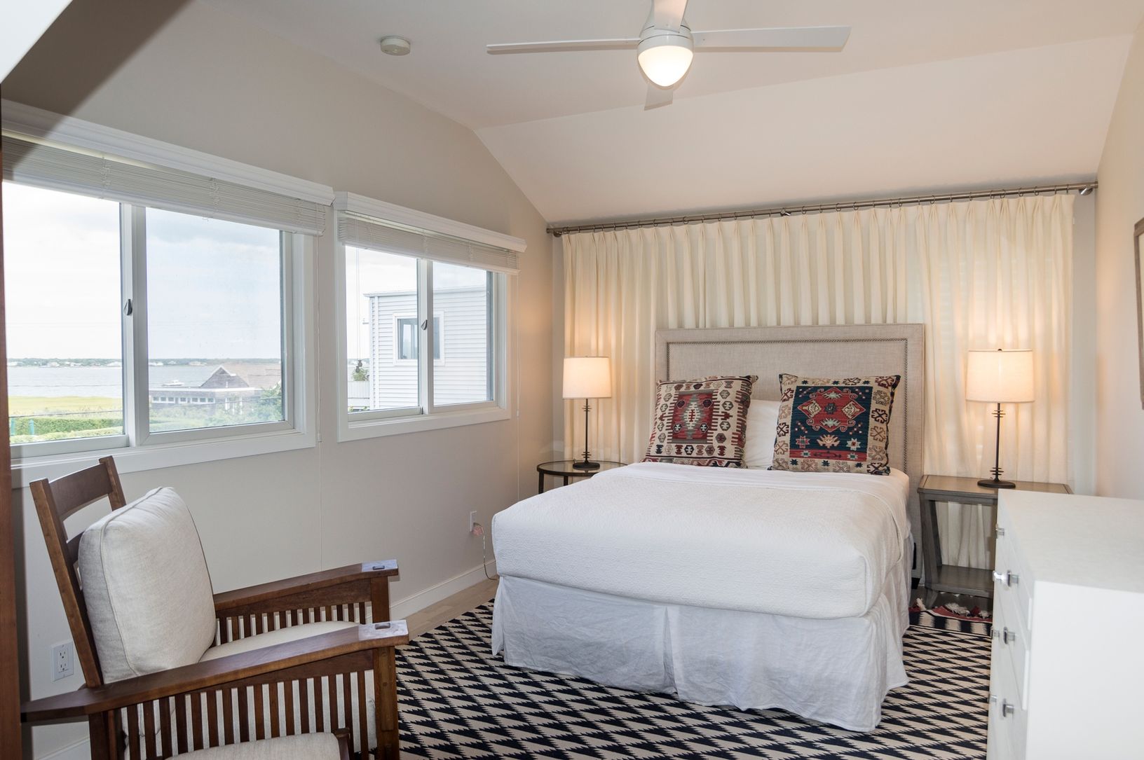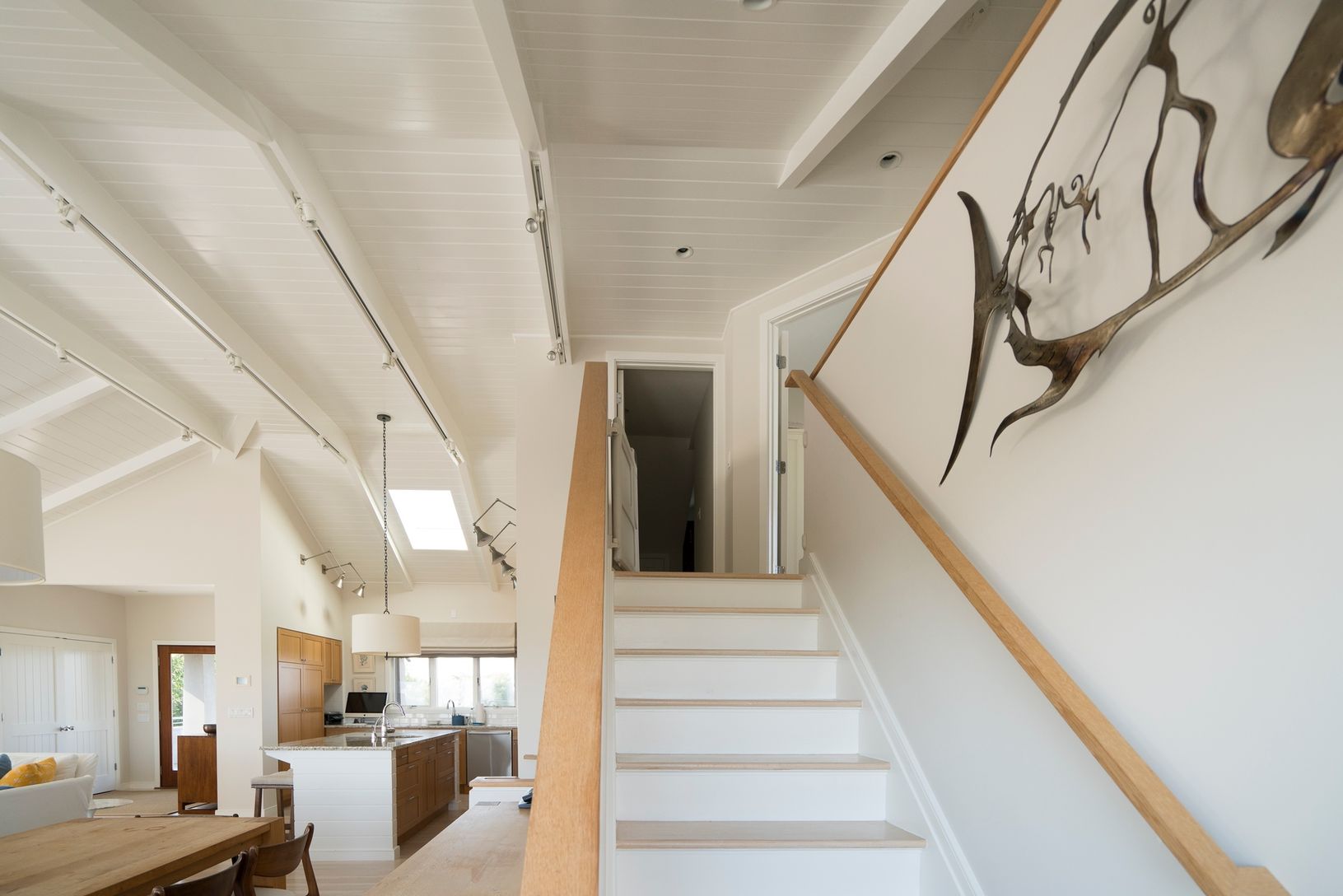 WESTHAMPTON OCEANFRONT. This totally updated Mint Modern was renovated in 2013 by the Award winning McAlpine House, using Mahogany, one of the finest natural hard wood sidings available. This home features beautiful water views from every room. The large great room with open floor plan & wood beam cathedral ceiling supports a Gourmet kitchen, dining area and living area with fireplace. There is a large MBR & marble / porcelain bath ove