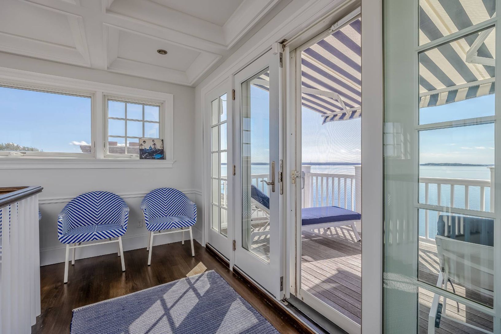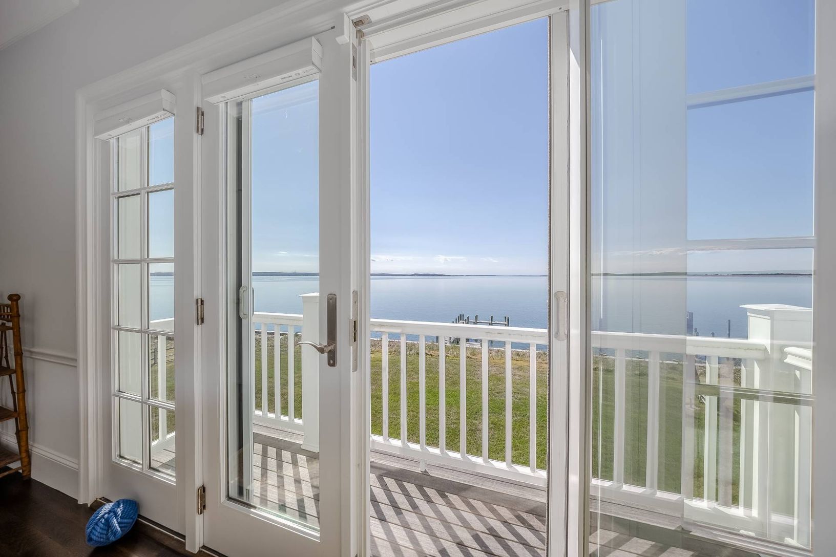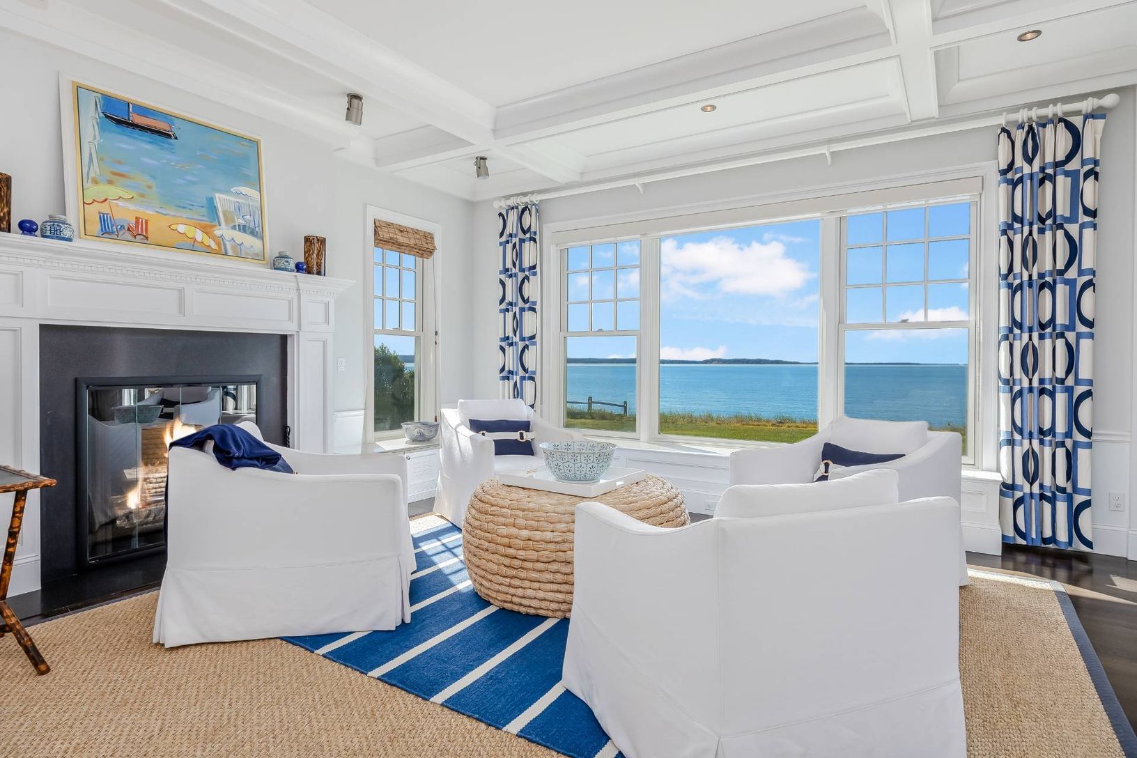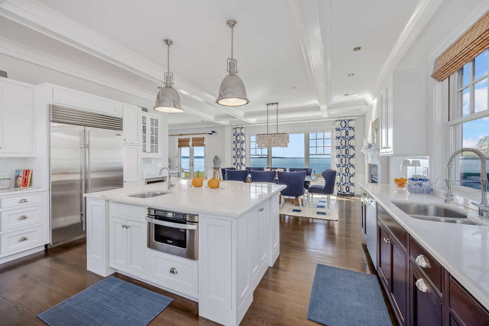 A rare offering on Shelter Island, this estate compound includes two distinct homes sold together: a traditional waterfront residence with dock located at 70 Peconic Avenue, and a recently built modern home with pool and water views at 55 Peconic Avenue, situated just across the street. The waterfront home at 70 Peconic Avenue features spectacular views from nearly every room and offers four levels of finished living space. The main floor incl