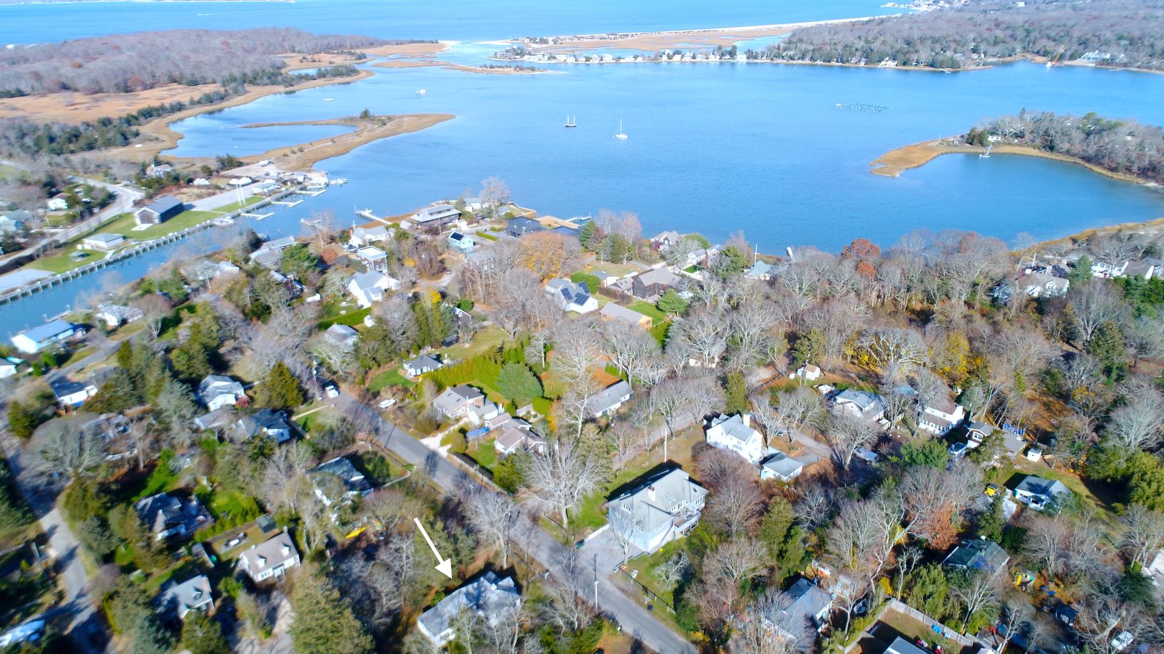 This charming Dutch gable-roofed cottage on a square lot just under .25 acres (100x100 feet) has already been gutted inside and is ready for your personal touch. Turn this into your dream home with vaulted ceilings, a wood burning fireplace, an attached garage and a legal shed in the back. Located in a friendly waterfront community, three miles from the village of Southampton, launch your kayak or paddleboard at the end of the street with acce