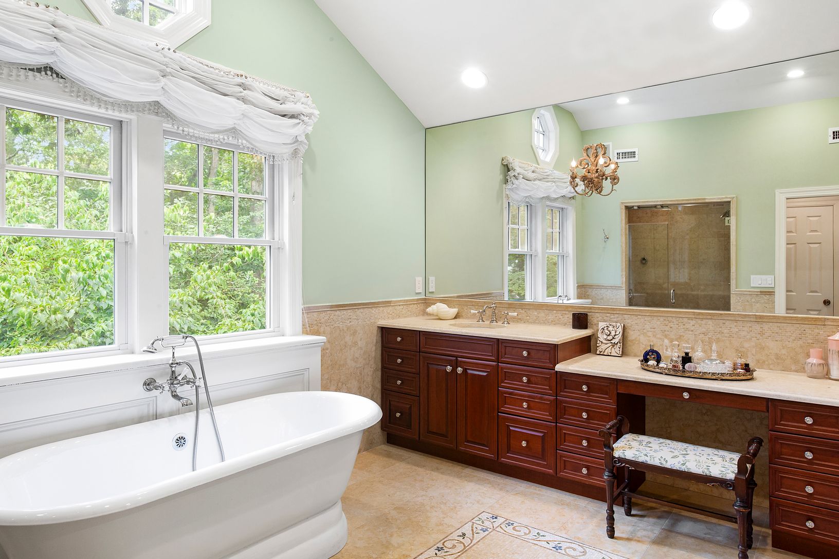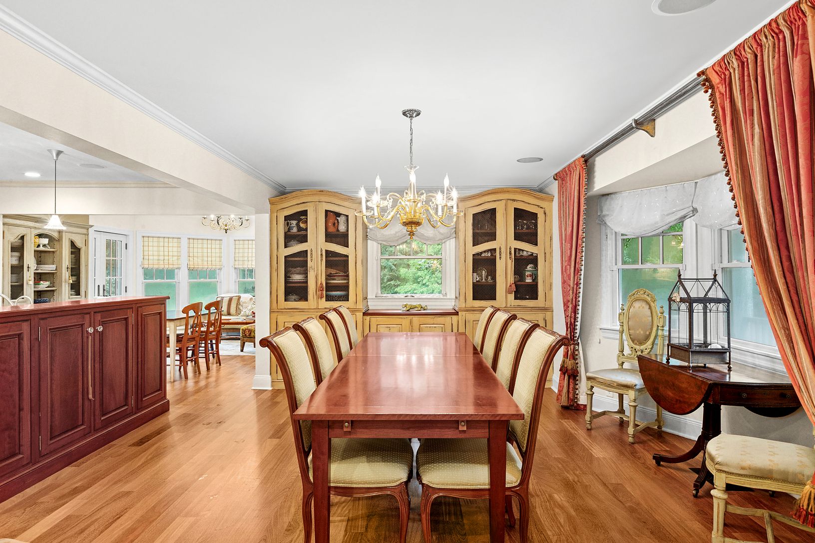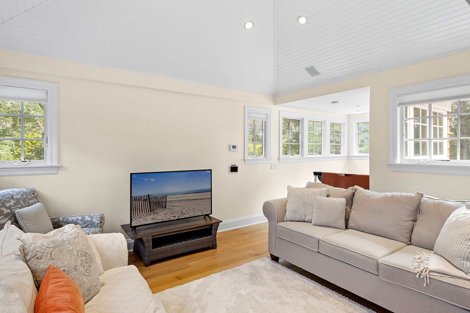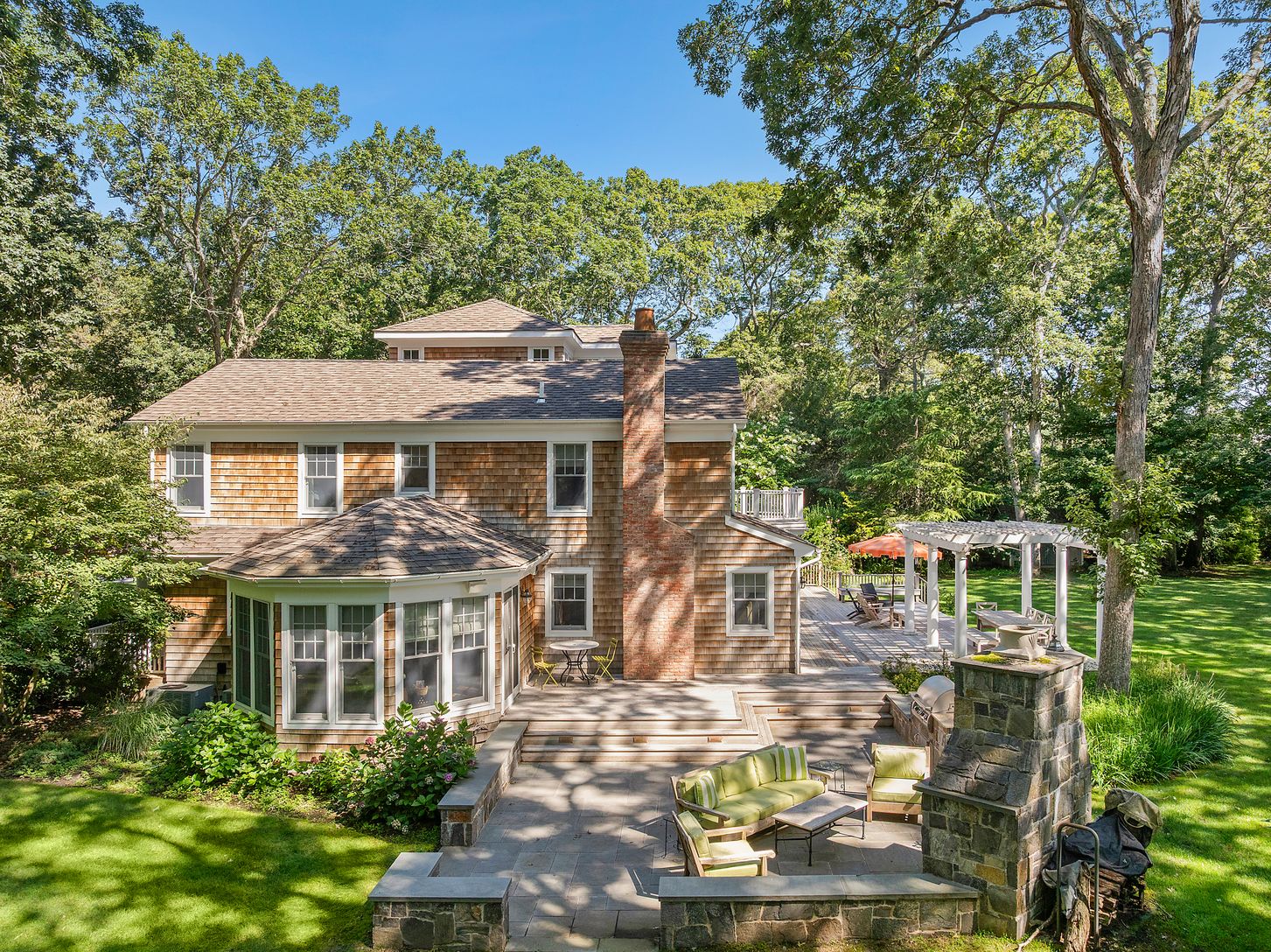 Set on +/- 1.33 acres at the end of coveted Cedar Lane, this fully renovated Post Modern offers both serenity and privacy amidst lush landscaping and gorgeous perennial gardens. The covered rocking chair porch and generous entry foyer are welcoming features of the home. The high-end custom country kitchen is complete with Wolf and Sub-Zero appliances, Quartzite counters, and Baccarat light pendants. The living room boasts an 8-speaker cinem