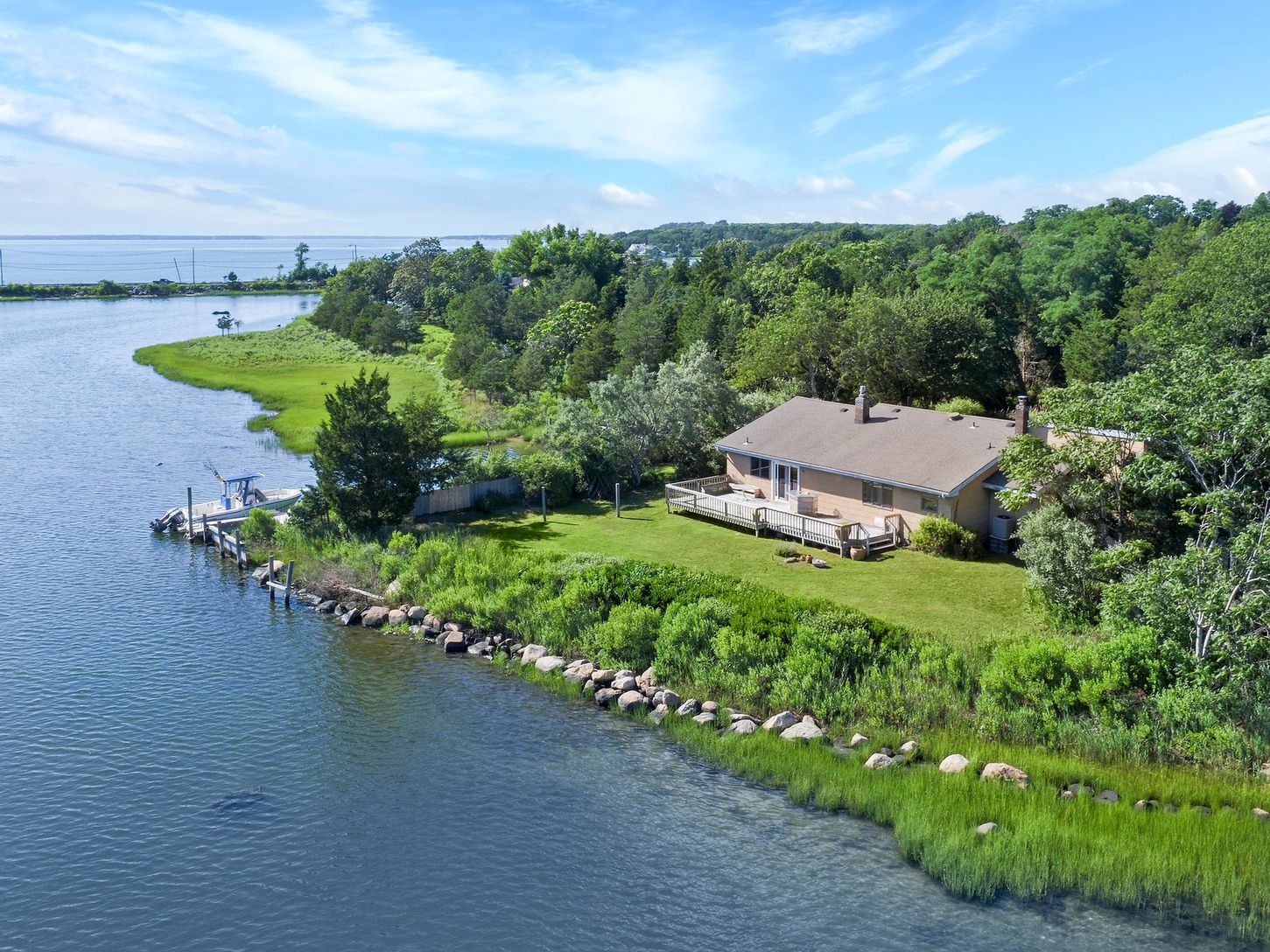 55 Coves End Lane is just that - Privately situated at the end of a cul-de-sac, this waterfront property on Sag Harbor Cove. It has just been listed for sale for the first time in 40 years. Gorgeous sunsets can be seen from the existing 2144SF house with 3 bedrooms, 2.5 baths, den, living room with fireplace, eat-in kitchen and deck overlooking the cove. Views of Noyac Bay and, in the distance, the North Fork. The .58 acre property borders t