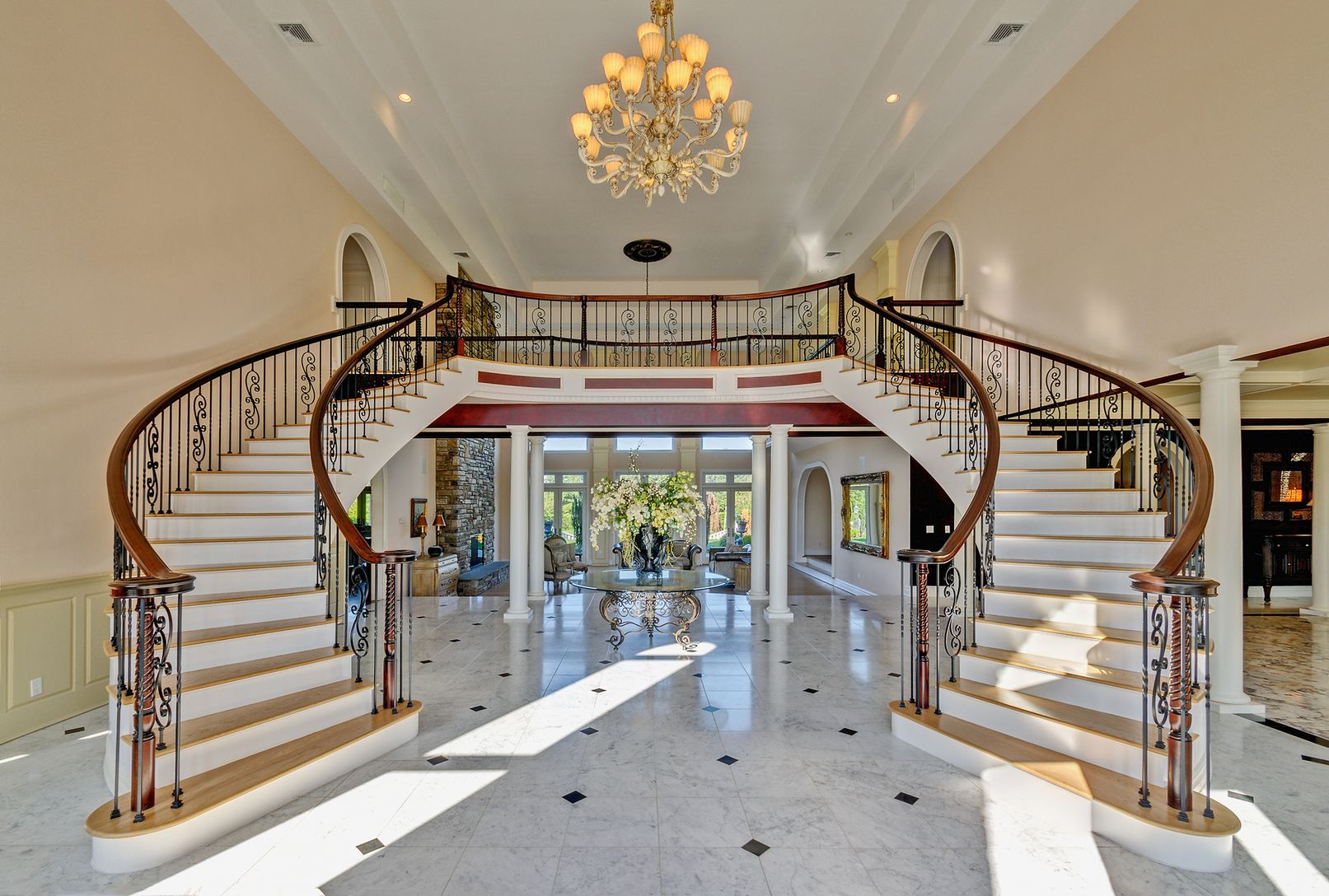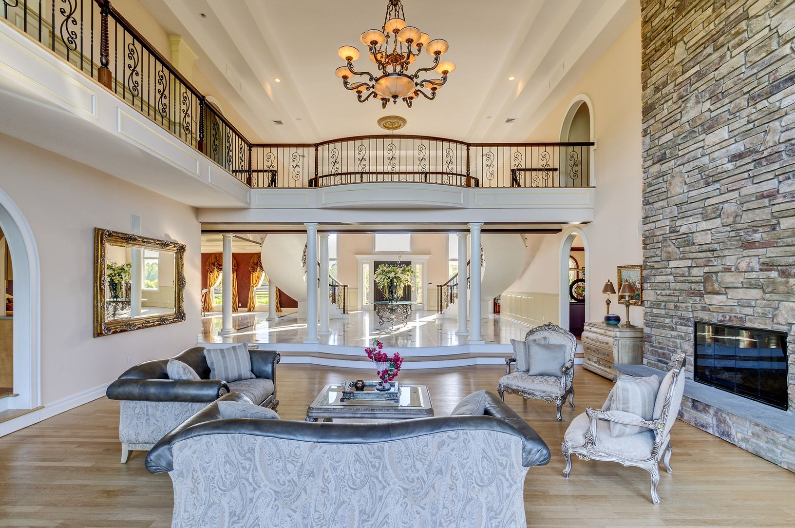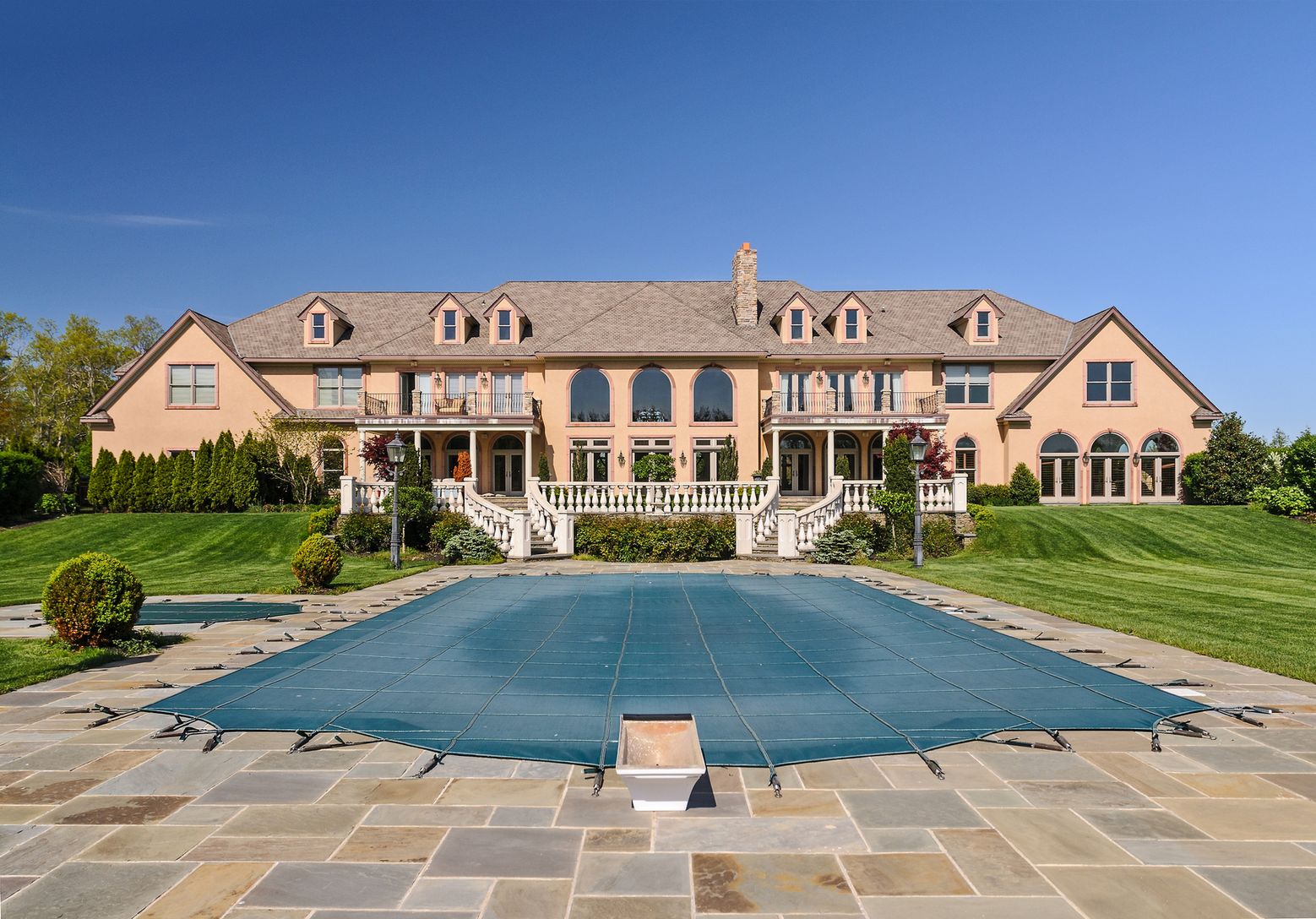 The ultimate in privacy, this 14,000 sq. foot estate lies on 37 acres. Equipped with 6 bedrooms, 7 ½ baths, a chefs kitchen, formal dining and living room, an indoor and outdoor pool, sauna, entertainment room, and an office. On the grounds is a 20 stall horse barn with 2 wash stalls and an indoor riding arena. There is room for 16 cars, with two apartments above the detached 12 car garage. An additional 20 acres to use as you wish, all develo